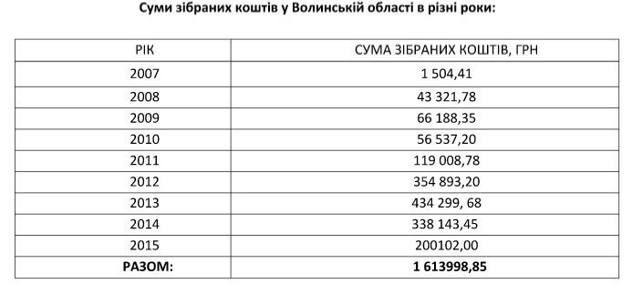 Волинська область щорічно бере активну участь в оргаізації зазначеної акції. Протягом 2007-2015 років за підтримки громадських організацій, органів студентського та учнівського самоврядування, навчальних закладів, органів державної влади та місцевого самоврядування, засобів масової інформації, бізнес-структур зібрали 1 613 998, 85 гривень.