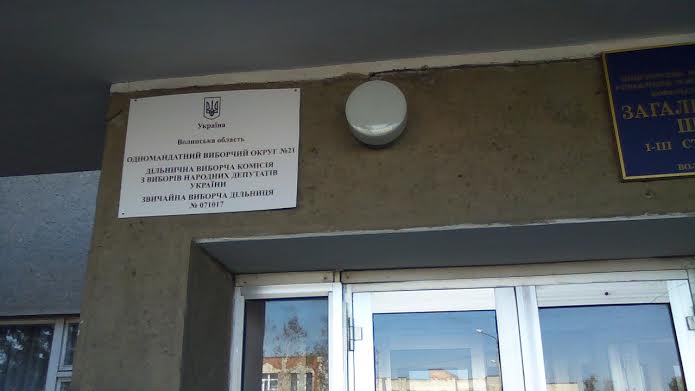 На Волині в школі, де розміщена виборча дільниця, вивісили сертифікат на півтора мільйона від кандидата.