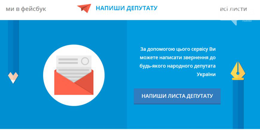 Відтепер волиняни, як і всі українці, можуть писати звернення до нардепів. У мережі з’явився сервіс "Напиши депутату", за допомогою якого кожен має можливість написати лист до будь-якого народного депутата України. Про це повідомила волинська активістка Богдана Стельмах на своїй сторінці у Фейсбук.