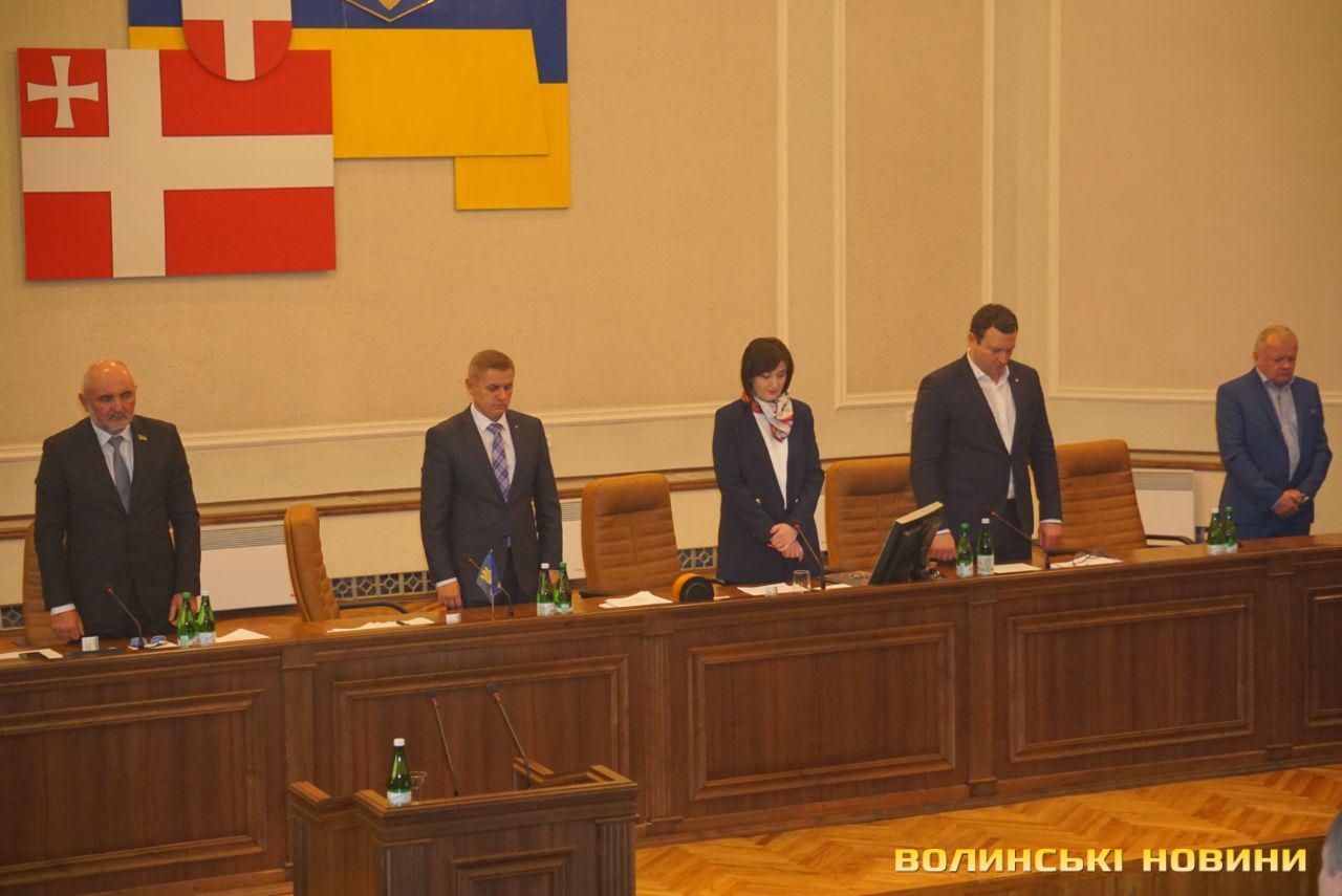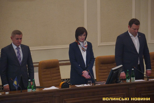 На початку сесії голова Волинської обласної ради Ірина Вахович нагадала, що в результаті проведення в Україні бойових дій на сході «загинули наші земляки».