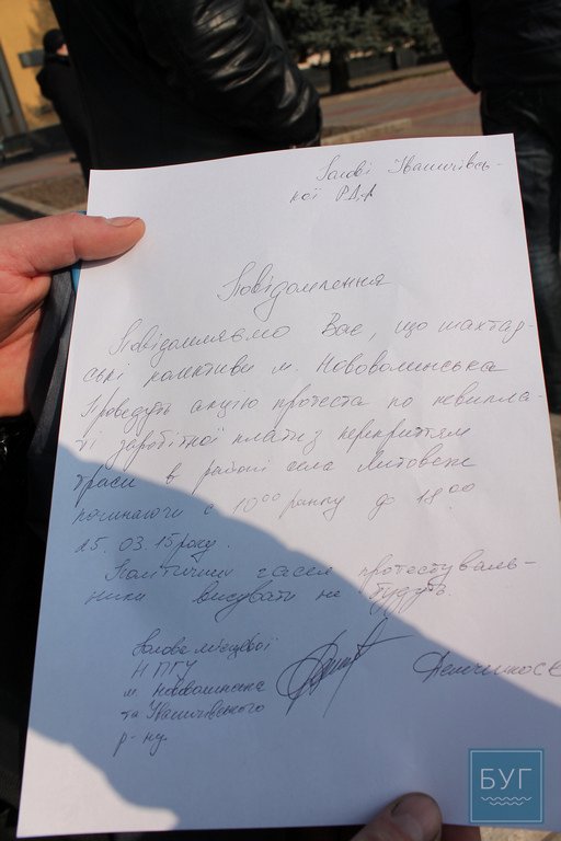 А уже 4 лютого обурені байдужістю влади волинські працівники вугільної галузі пікетували Міненерго. Окрім цього, 13 січня 2015 року волинські гірники зустрілися із Міністром палива та енергетики Володимиром Демчишиним.