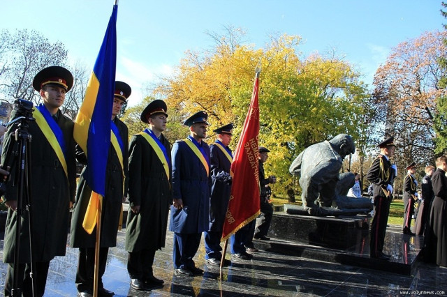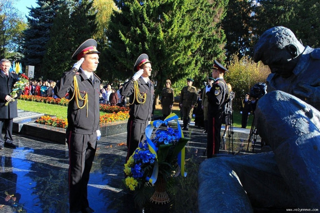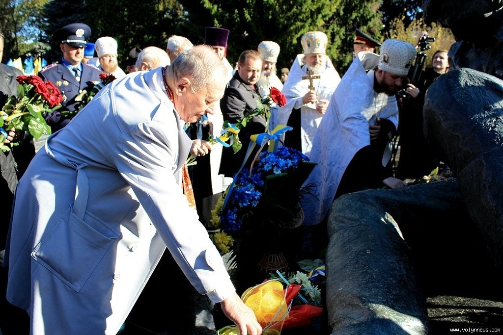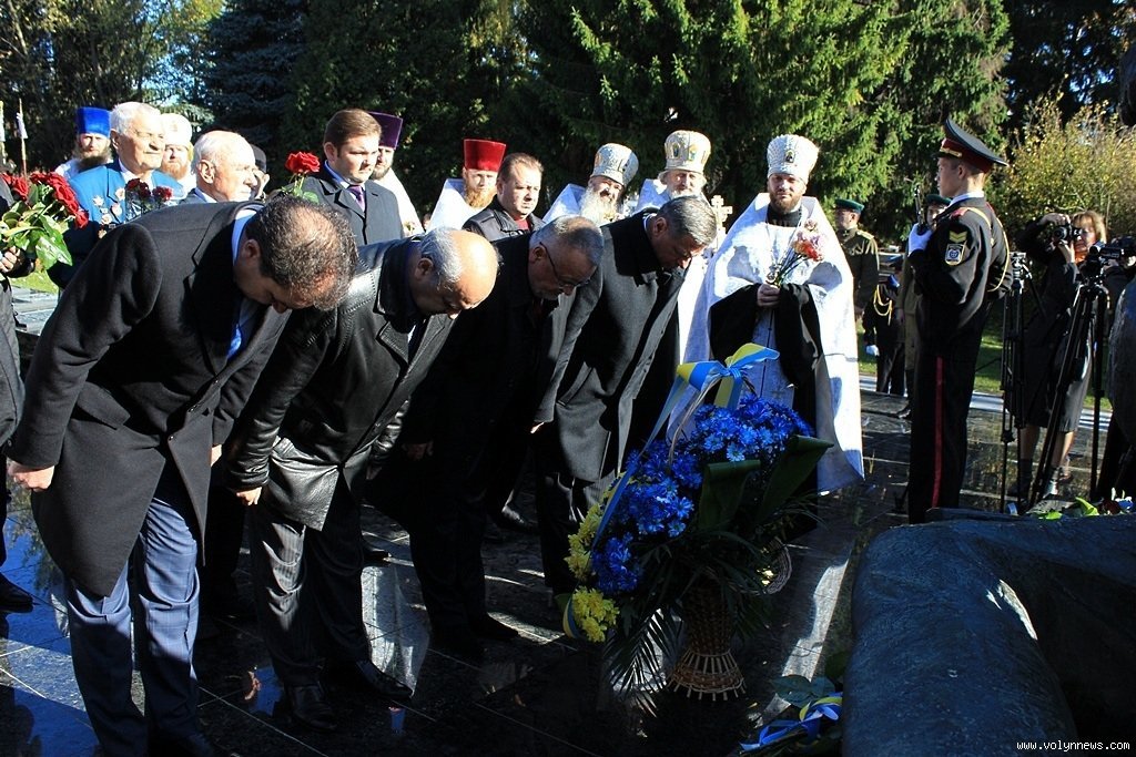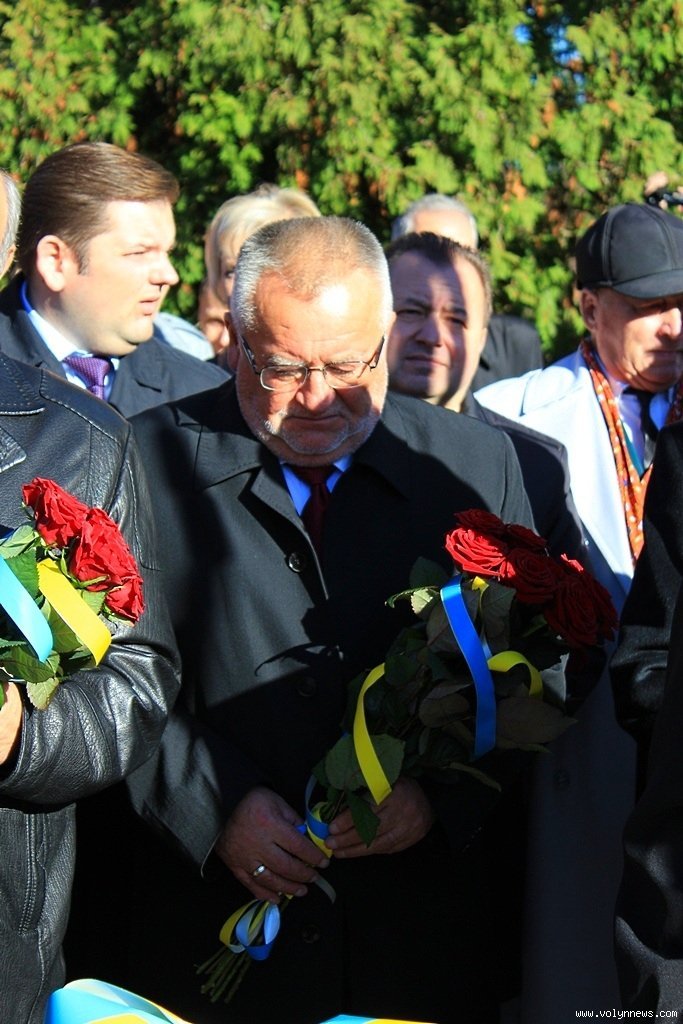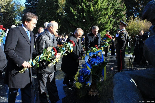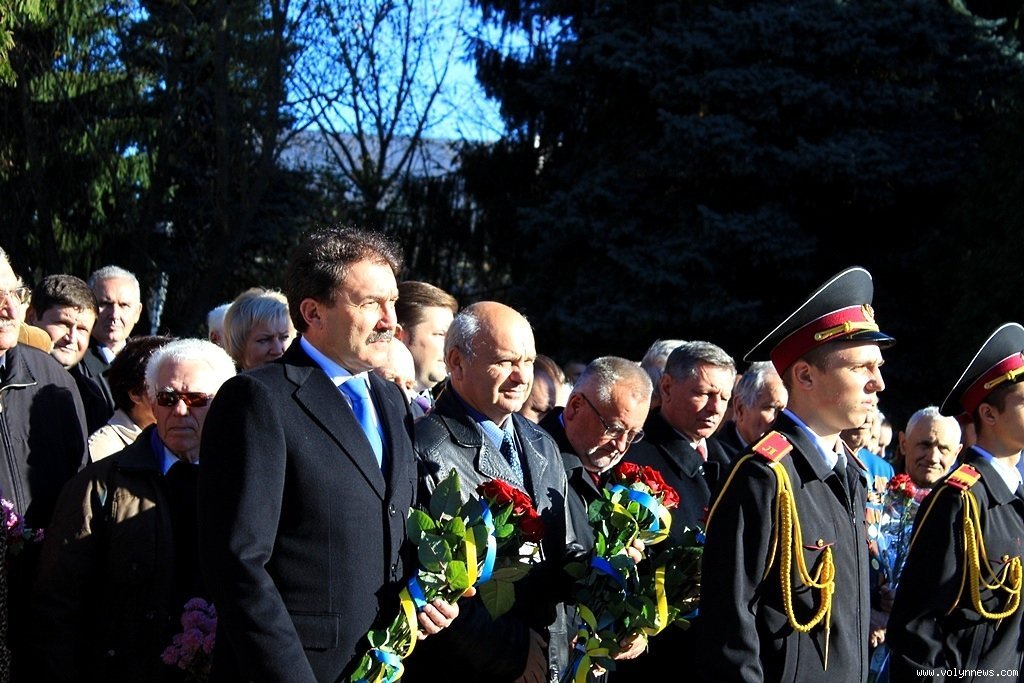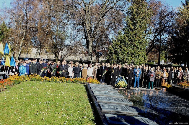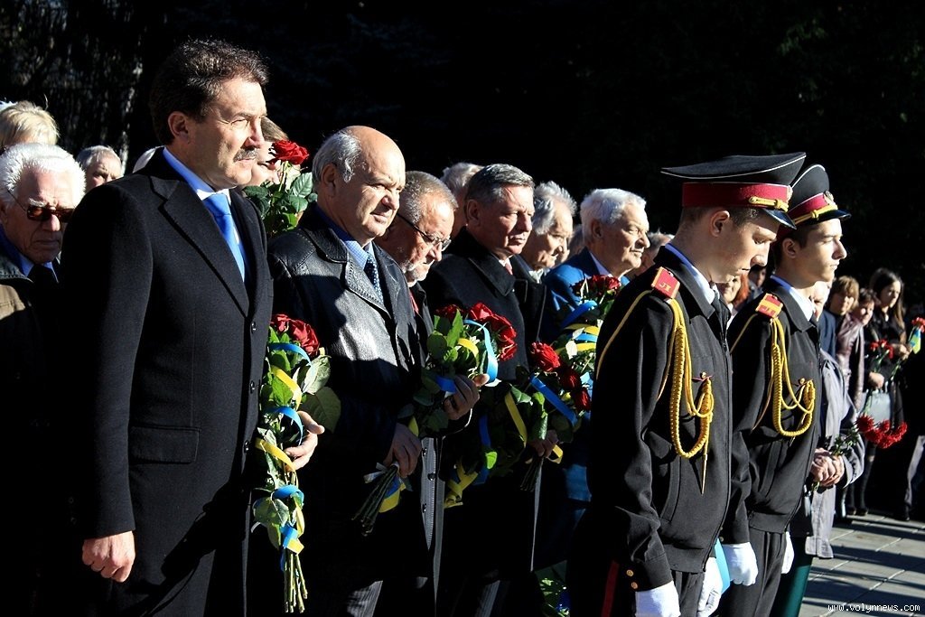 Після хвилини мовчання, перед Могилою невідомого солдата схилили голови та поклали квіти разом із ветеранами представники влад. Луцький міський голова Микола Романюк наголосив, що пам’ятати потрібно не лише тих хто загинув, а й шанувати героїв, які залишилися жити й допомагати їм у нелегкому повсякденному житті.