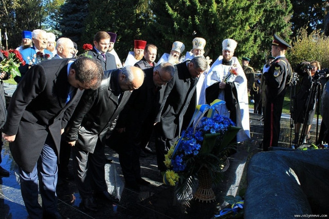 Так, урочисті заходи до 69-ої річниці звільнення України від фашистських загарбників розпочали із щирої молитви за усіх, хто не повернувся з фронтів Великої Вітчизняної війни до рідних домівок. Тож представники духовенства волинської єпархії УПЦ відслужили панахиду за загиблими воїнами.