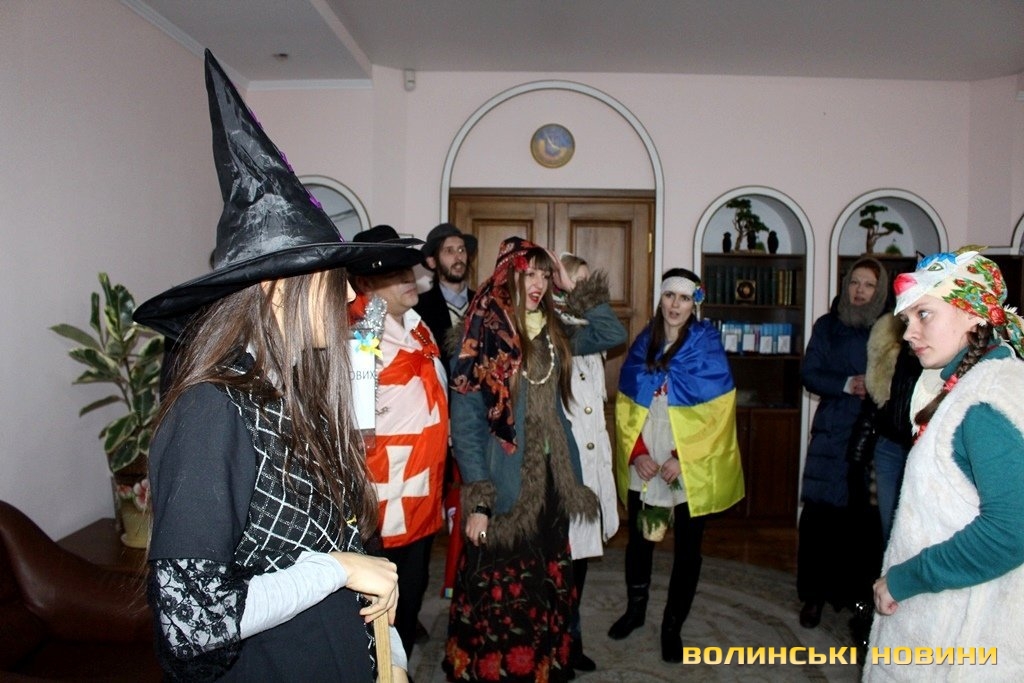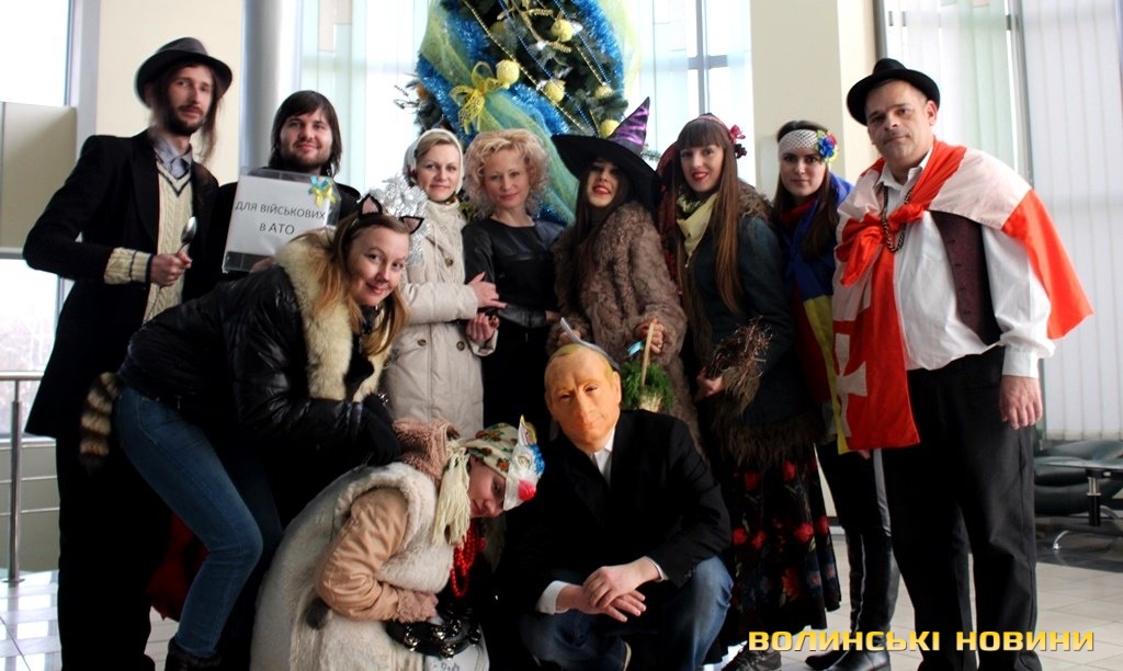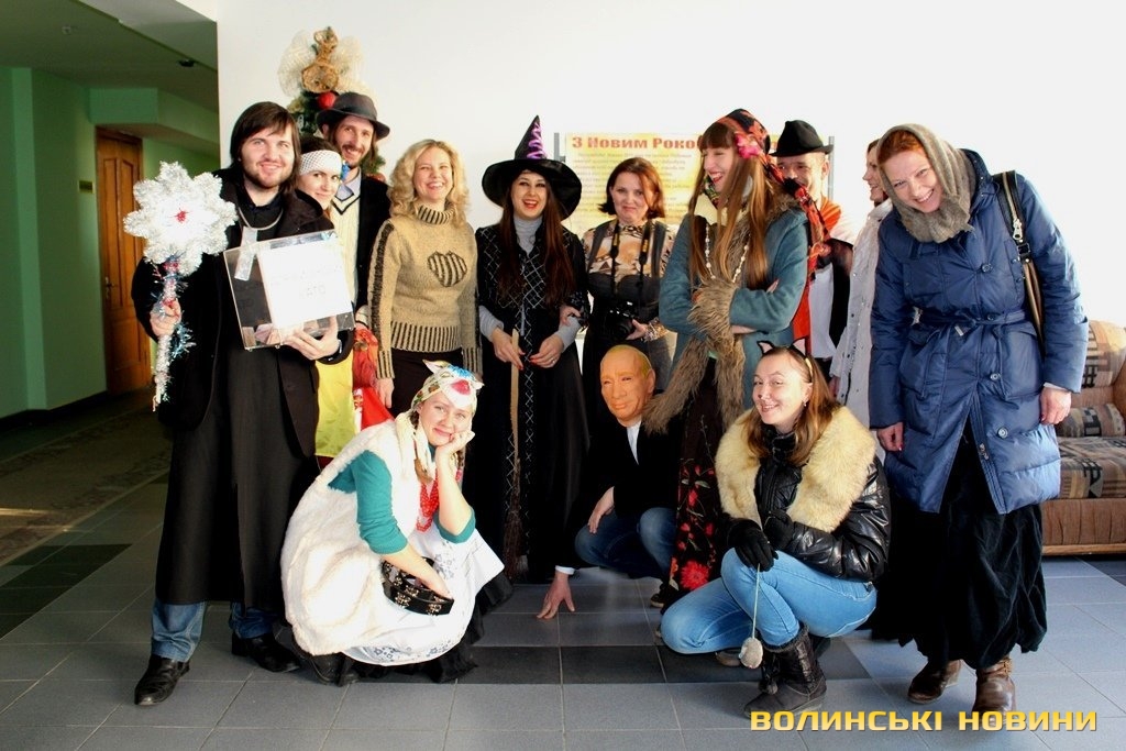 Неочікувані гості співали щедрівок, віншували.Водили Козу.Давали колективних стусанів головному злу України - імпровізованому Путіну.Насамкінець дарували працівникам оберіг від всього злого - укроп, для того аби в їх кабінети приходили лише добрі люди.
