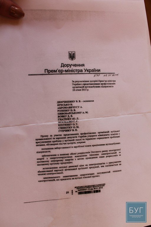Сьогодні на зустрічі не прибули очільники необхідних міністерств, хоча вчора у прем’єра це було обговорено. Це викликало чергову недовіру діючій владі. Ті питання які ставились міністру Демчишину засвідчили нерозуміння шахтарських проблем. На повторну зустріі у профільному міністерстві прибули представники із міністерства соцполітики та міністерств фінансів. Вони виявили некомпетентність в даних питаннях, що обурило шахтарських представників. Сьогодні підривається довіра до держави. Велика вдячність шахтарям, адже вони рятують вугільну галузь. Особлива подяка волинським гірникам, які перші забили тривогу і зараз відстоюють разом із усією країною енергетичну незалежність. Конкретних відповідей немає. Робочий комітет продовжує роботу. Але поки що, жодного документа не напрацьовано, окрім доручення прем’єр міністра. У ворожих ДНРівських ЗМІ звучить, що я намагаюсь скинути прем’єр-міністра – це брехня. Ми не висували політичних вимог».