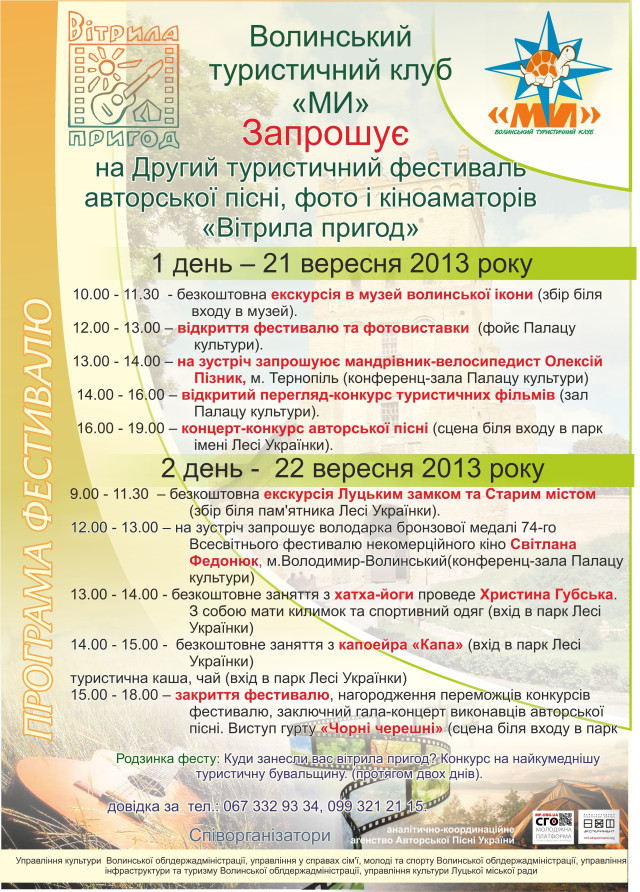 22 вересня 2013 року учасників та гостей фестивалю чекає безкоштовна екскурсія вуличками Старого міста та Луцького замку.