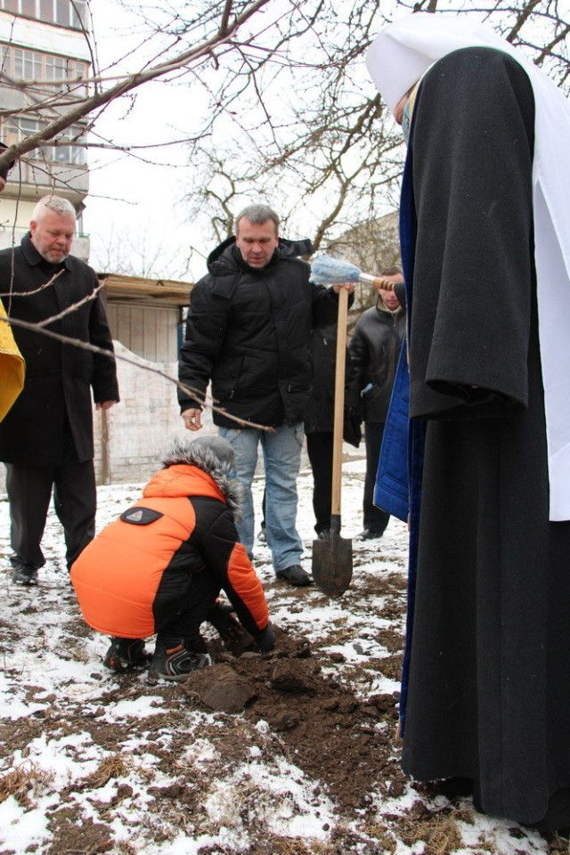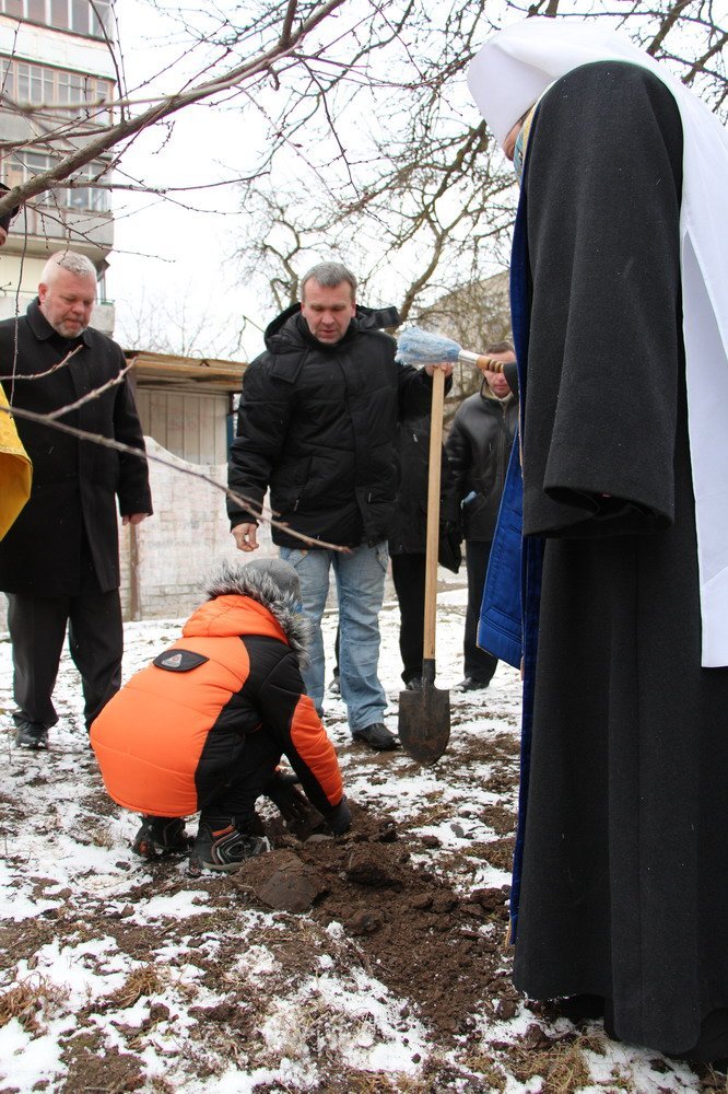 Високопреосвященний благословив присутніх на добре будівництво. Він переповів слова одного майстра: «Якщо кожен щонеділі приноситиме по цеглині, за три роки матимете церкву вже з куполами».