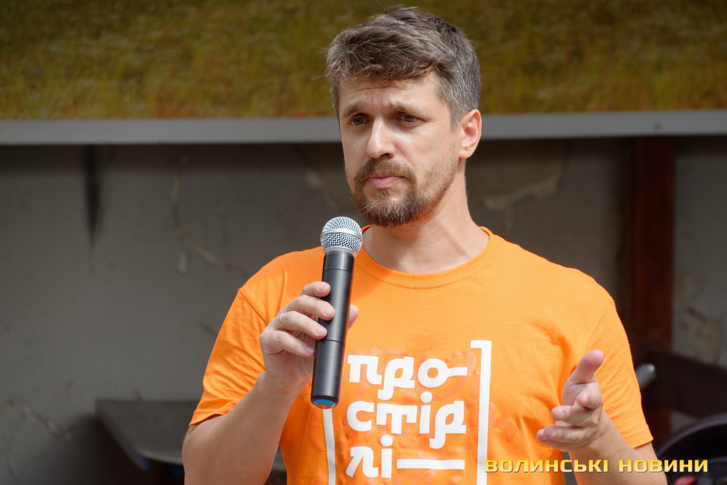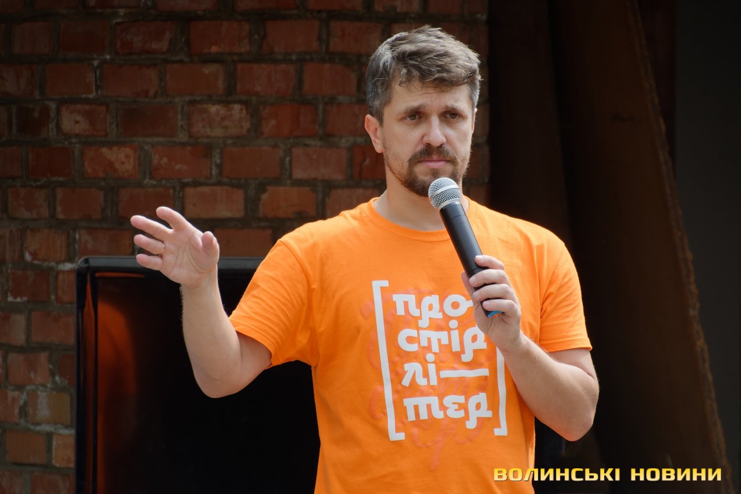 Фестиваль розпочався зі знайомства усіх гостей. І справді, затишна атмосфера двору будинку Косачів сприяла дружній атмосфері. Ідейний натхненник та голова оргкомітету фестивалю, шрифтовий дизайнер Кирило Ткачов розповів про основну ідею та ключові особливості заходу. Зокрема, нинішній фестиваль проводиться вже вп’яте. Цьогоріч у ньому планується участь близько 150 гостей. До речі, щороку географія (як і кількість учасників) заходу лише розширюється – «Простір літер» відвідують фахівці не лише з різних куточків України, але й Білорусі, Німеччини, Польщі, Греції, Литви інших країн. Відзначив дизайнер і тісну співпрацю з міжнародною шрифтовою конференцією «GRANSHAN».