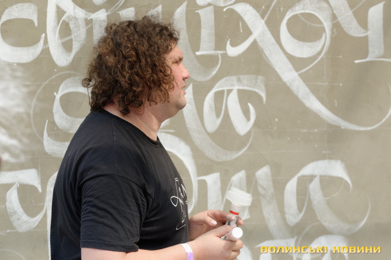 Кирило Ткачов наголосив, що фестиваль цікавий не лише для спеціалістів галузі, але й для креативних людей взагалі. Адже його програма включає як теоретичні доповіді спеціалістів на різноманітні теми так і практичні уроки та майстер-класи.Для підтвердження своїх слів, художник оголосив програму першого дня фестивалю – майстер-клас «Основи шрифтового дизайну в програмі «FONTLAB» (від знаного фахівця Edik Ghabuzyan) із застосування комп’ютерної техніки для тих, хто готовий вчитися «за партою», і майстер-клас на свіжому повітрі – «Каліграфічні експромти вулицями міста». Таким чином, частина гостей фестивалю залишилася у дворику, а інша частина здійснила невеличку екскурсію Луцьком. Саме так можна назвати подорожі між трьома локаціями – будинком на вулиці Кафедральній 12, Молодіжним центром Волині та стіною Центральної бібліотеки для дітей.На цих імпровізованих «полотнах» майстри каліграфії продемонстрували своє вміння артистично виводити кожну букву, використовуючи різні стилі та інструменти.Після спостереженням за роботою художників та спілкуванням з ними, гості заходу отримали нагоду пообідати та відпочити. Після цього на них чекає лекційний блок — «Шрифт в Україні», на якому 5 спікерів обговорять актуальні теми галузі. Закінченням першого фестивального дня стане закрита вечірка в одному з луцьких клубів.