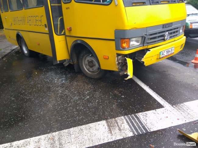 Шкільний автобус у Луцьку не розминувся з легковиком