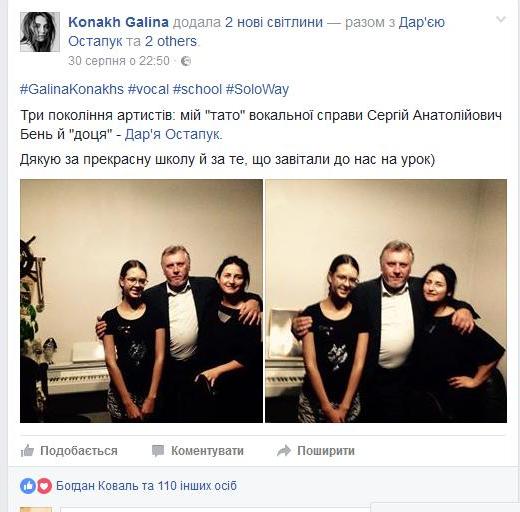 У дописі також позначена відома співачка Галина Конах, яка займається з Дар’єю вокалом та навіть називає її своєю творчою «доцею».