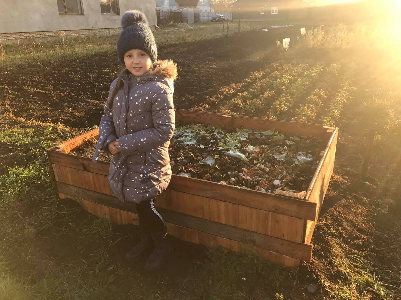 Юна волинянка, що навчається у 3 класі школи села Рованці, під час осінніх канікул виготовила 3 компостери.