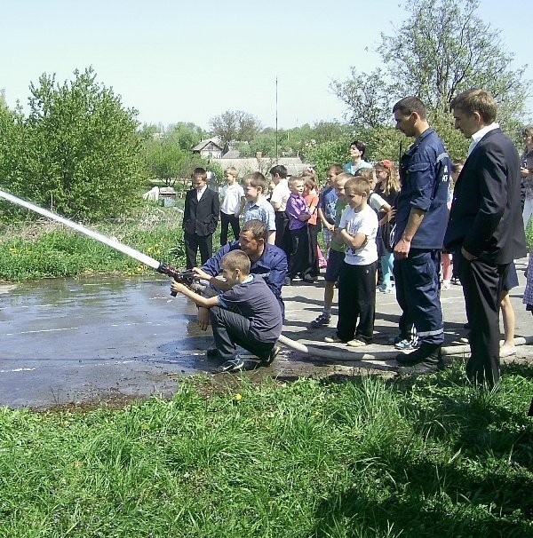 Шквал емоцій викликало приборкання умовної пожежі. Більше того – школярі й самі спробували подати воду на гасіння.