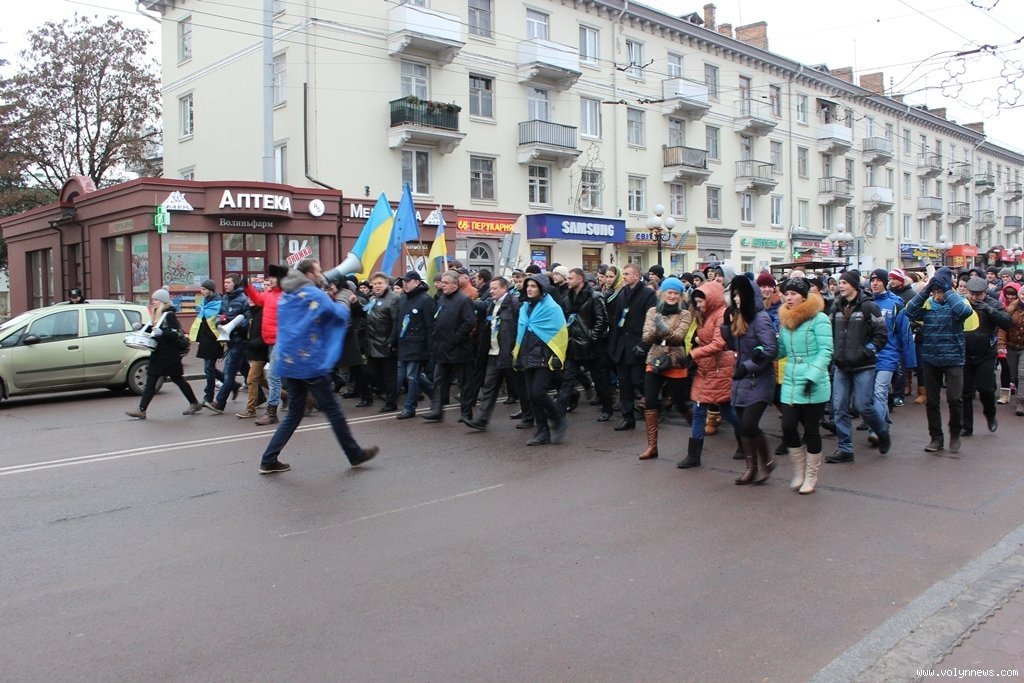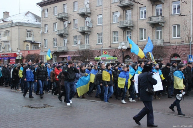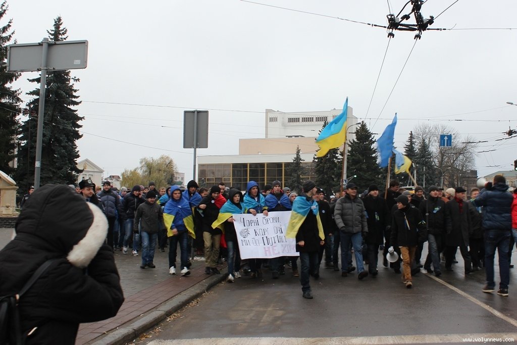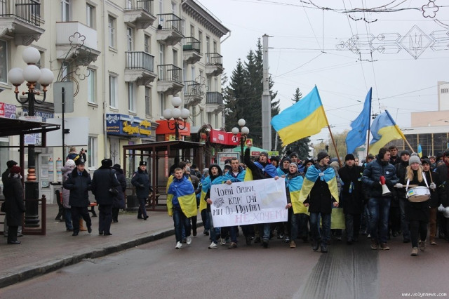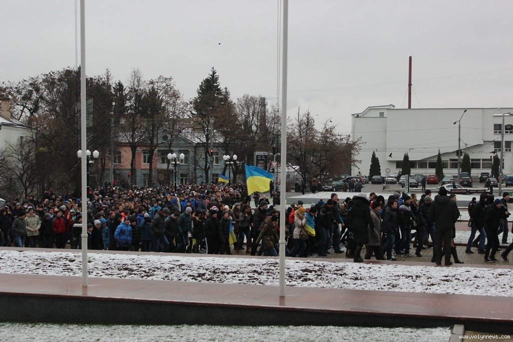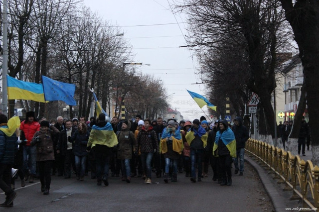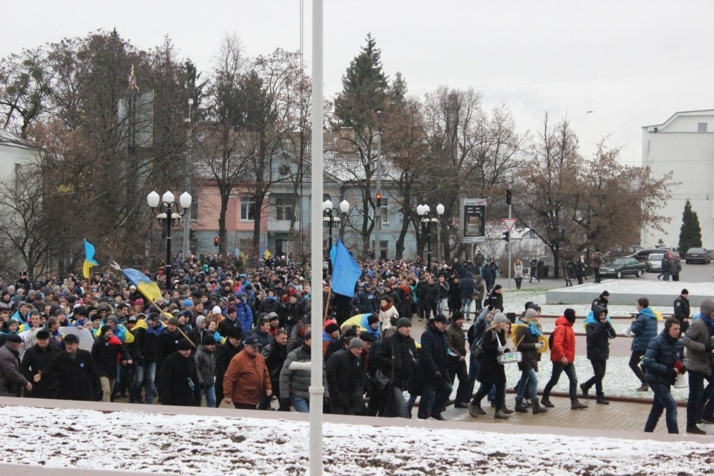 Хода з Театрального майдану до Київської площі зібрала більше тисячі людей. На вранішній мітинг здебільшого прийшла молодь. Нагадаємо, учора, 27 листопада, відбувся студентський мітинг на підтримку євроінтеграції.