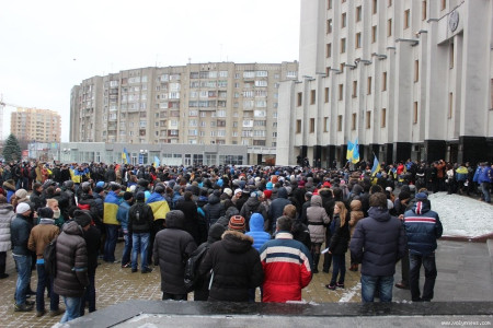 Вердикту обласної ради з приводу євроінтеграційного рішення чекають мітингувальники під вигуки «Чорні брови, карі очі, я до Путіна не хочу».