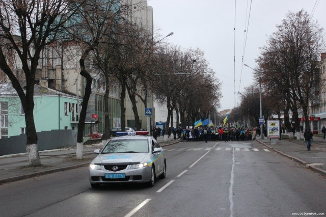Після зборів на Театральному майдані колона мітингувальників у супроводі декількох нарядів правоохоронців, рушила по проспекту Волі.