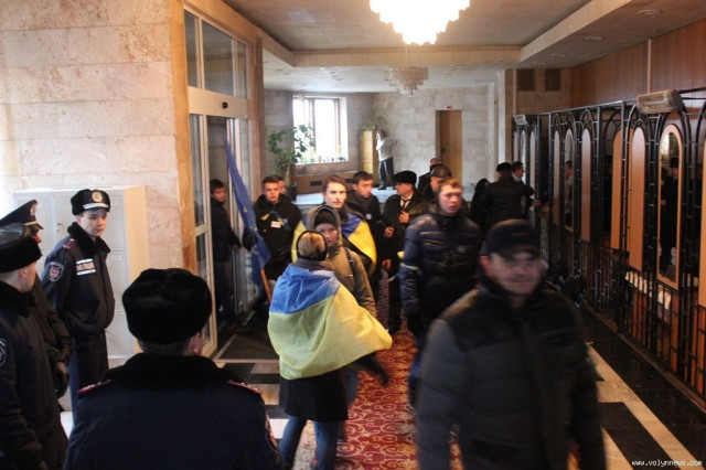 Згодом, мітингувальники делегували групу активістів, які зайняли місця у сесійній залі.