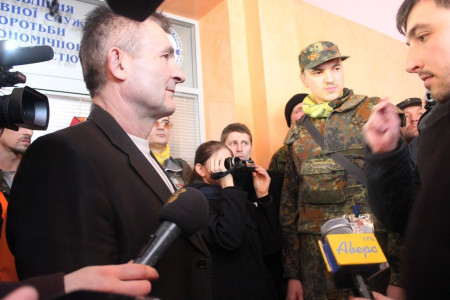 Активістів така відповідь не влаштувала. Йому почали говорити, що ситуація починає загострюватися, і натякнули, що з «ним може бути те, що було з Башкаленком». Нагадаємо, під час штурму обласного управління МВС 19 лютого, колишнього очільника облдержадміністрації Олександра Башкаленка виявили в кабінеті тодішнього керівника обласної міліції Олександра Терещука. Коли Башкаленко відмовився писати заяву на звільнення, його кинули в розлючений натовп, де його побили, згодом повели на сцену, облили водою і прикували наручниками до сцени. Потім його, начебто, повезли в підвал ОДА, але, як з’ясувалося згодом, відпустили.