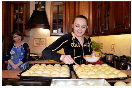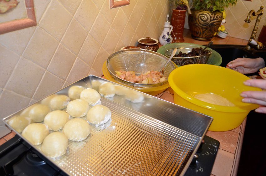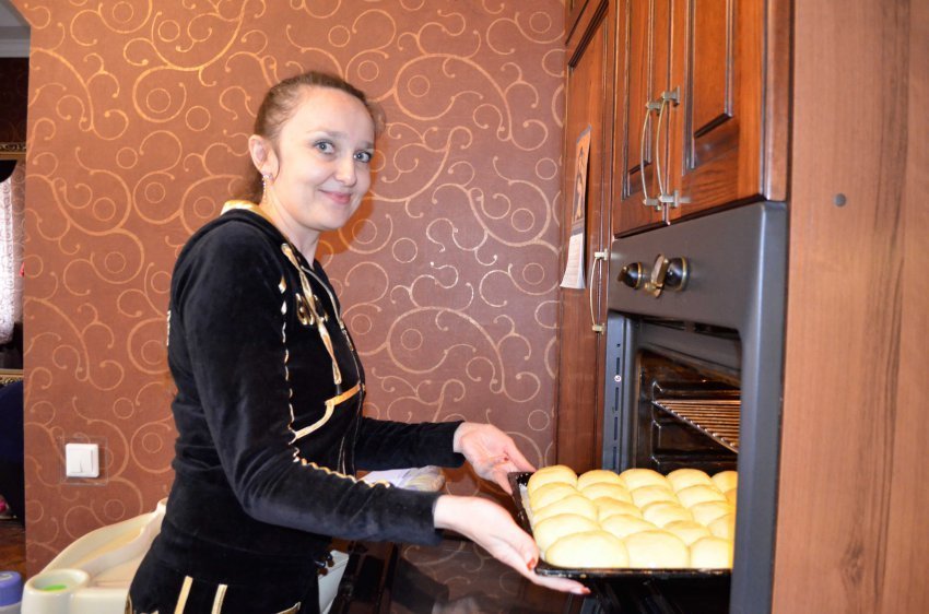 Чималенька кухня заставлена дечками і підносами, цукром і мисками з начинкою. Центральний об’єкт інтер’єру – 90-літрова миска для тіста, накрита скатертинкою. А кругом цієї діжі крутиться Світланина помічниця.