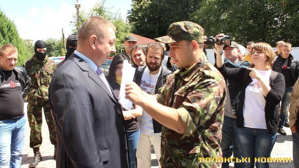 Візит Правого сектору і Автомайдану України Волині до очільника Волинського УДАІ Володимира Кравчені з вимогою відставки керівника і його заступників закінчився сутичкою.