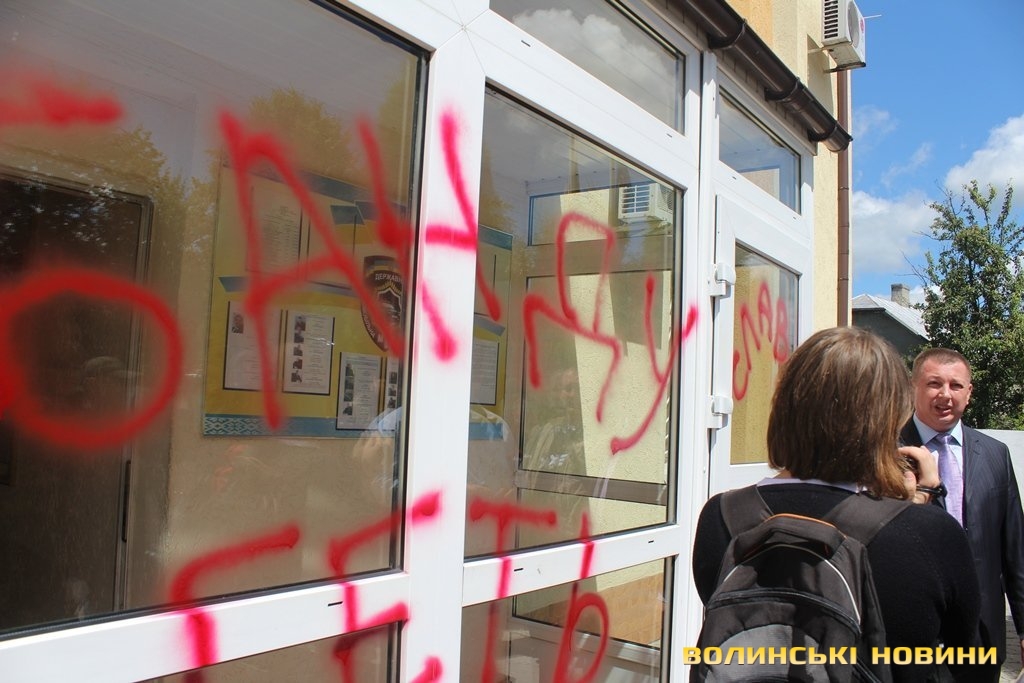 ну не розумію як це на обласному підрозділі УВС якесь бидло щось там малюю. . чим довше бродить цей зброд по місту тим нижче падає рейтинг міліції і прокуратури в очах простих волинянь.