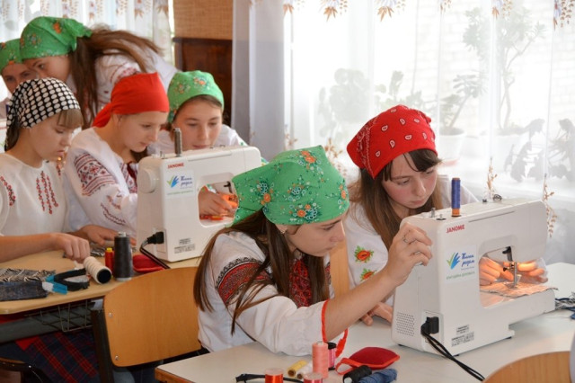 «Поки що ми тільки набиваємо руку. Адже раніше мені доводилося шити лише на бабусиній старенькій швейній машинці. Було незручно, але я старалася. Коли в школі поставили ці багатофункціональні машинки, я захотіла пошити щось екстравагантне. Швачкою бути не планую, але хочу навчитися шити для себе і подруг», – каже восьмикласниця Марина Поліщук.Як розповіла вчителька трудового навчання Галина Ревчук, у їхній школі уроки трудового навчання не завжди проводили згідно з програмою, запланованою міністерством. Пояснити на пальцях чи на старому плакаті те, що вимагає Міністерство освіти й науки, було неможливо. Але з появою сучасних швейних машинок у майбутніх господинь з’явилася можливість навчитися шити елементарні речі.«Перші клаптики тканини для шиття діти принесли з дому. Потім звернулися до наших випускниць, які працюють на Ковельській швейній фабриці. Вони допомогли з тканиною. У 8-му класі будемо шити спіднички і фартушки, у 9-му – блузки. А ще плануємо шити речі військово-патріотичного призначення і передавати їх воїнам в зону АТО. Це будуть сумки для медичних аптечок, рукавички, сувеніри», – ділиться задумами Галина Ревчук.