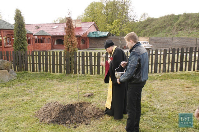 Перед посадкою дерев місце освятили, саджанці обв’язали синьо-жовтою стрічкою. Також згадали імена загиблих Героїв, в честь яких висадили дубки: