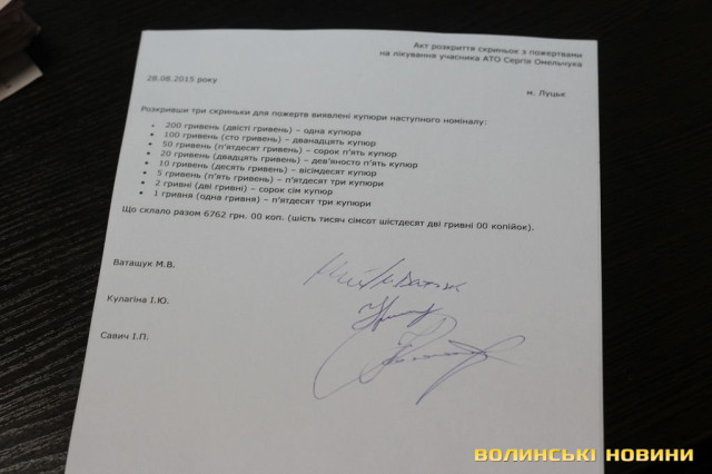 Одним з ініціаторів збору коштів став волонтер на журналіст інформаційної агенції ZIK Мирослав Ватащук. Долучилися до збору коштів громадський діяч Ірина Кулагіна, боєць батальйону «Азов» Олексій Кушнєр і журналіст Інформаційного агентства Волинські Новини Іван Савич.Загалом, спільними зусиллями лише за перший день проведення фестивалю вдалось зібрати 6762 гривень. Цю суму, а також кошти, отримані під час другого дня фестивалю, передадуть волонтерці Наталії Ариванюк, яка опікується пораненими бійцями.