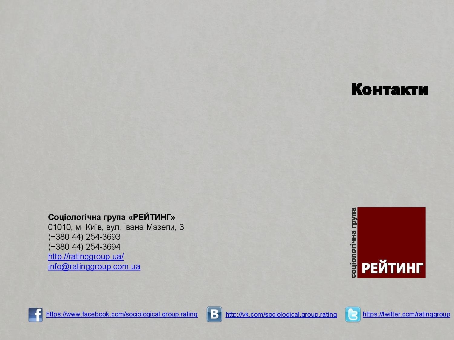 Аудиторія: населення України від 18 років і старші. Вибірка репрезентативна за віком, статтю, регіонами і типом поселення.