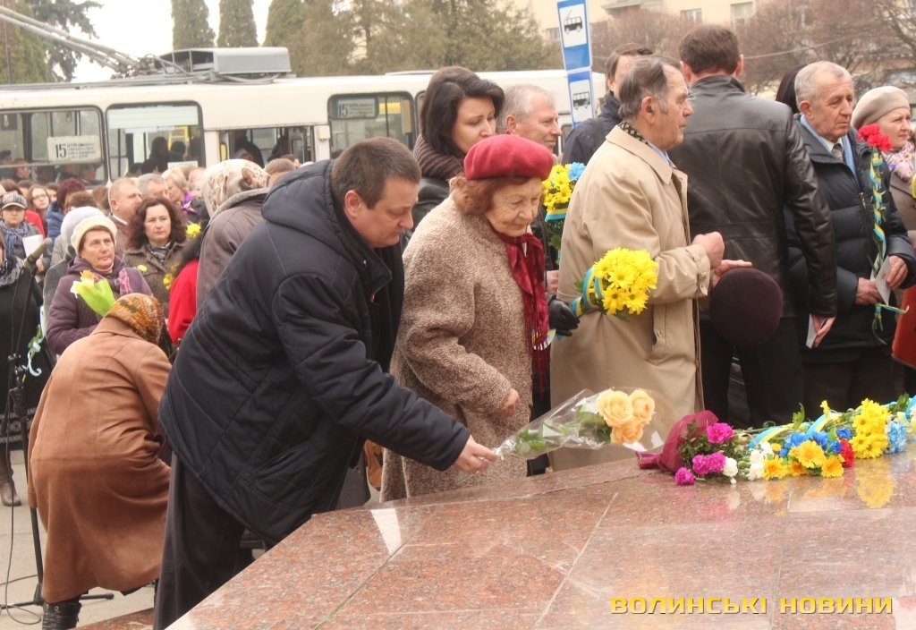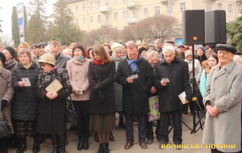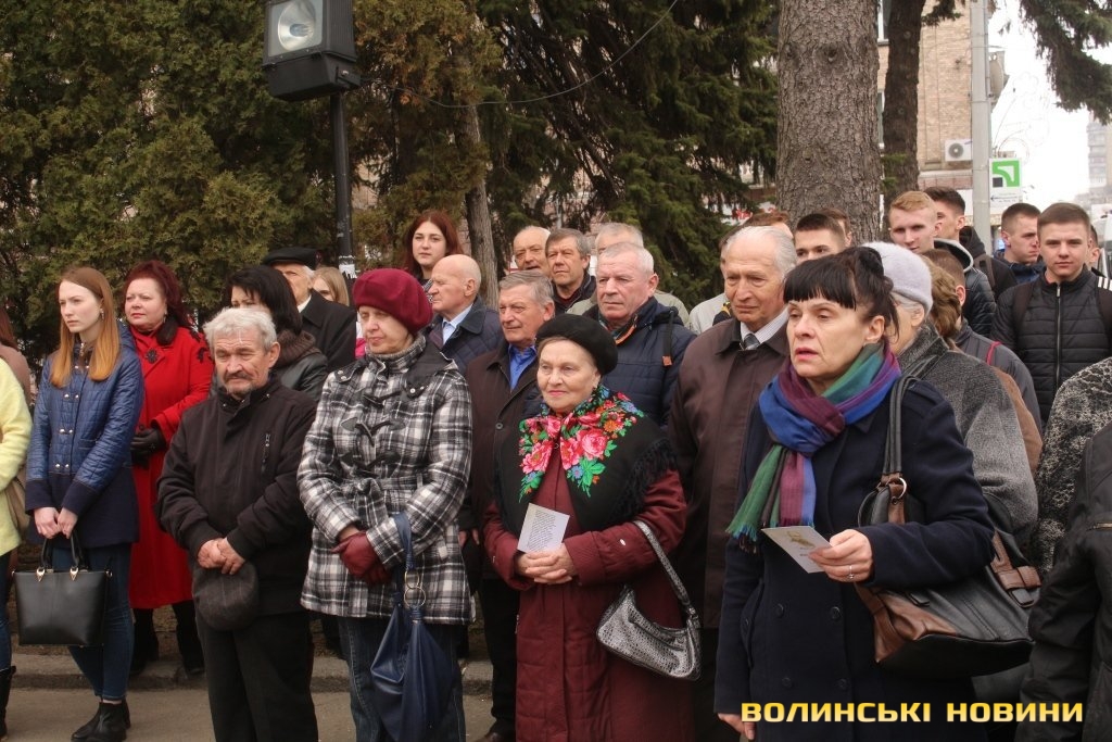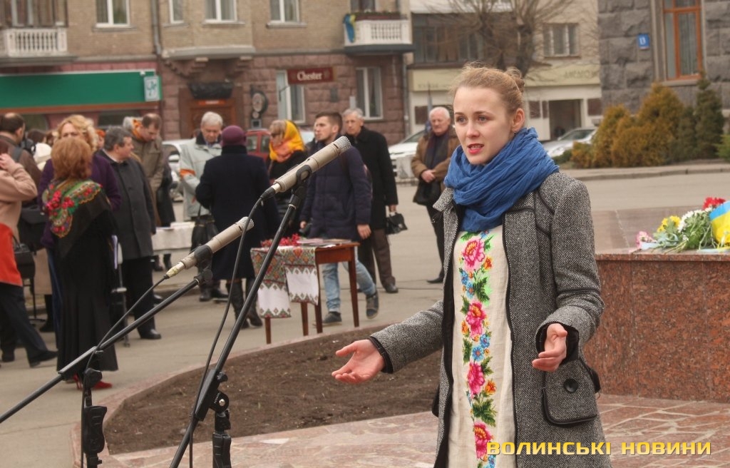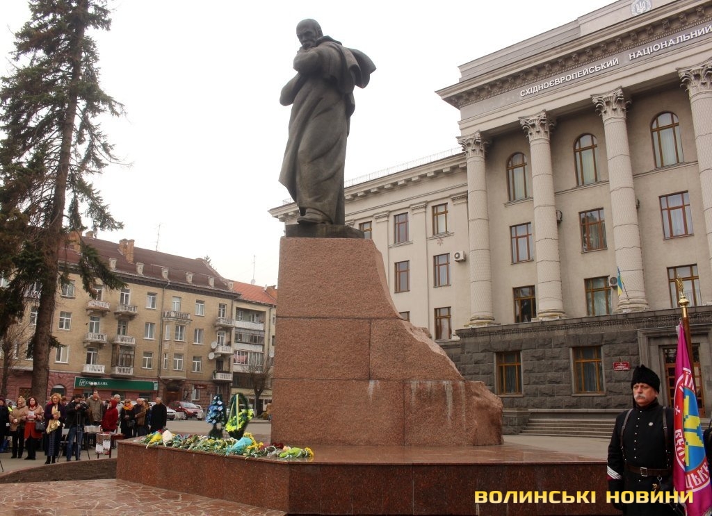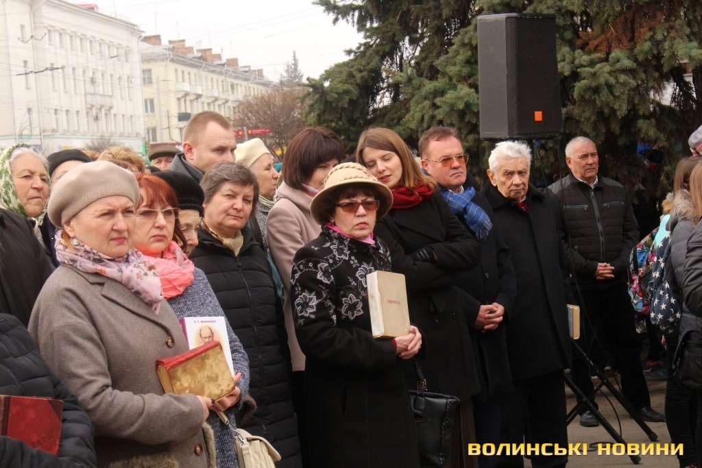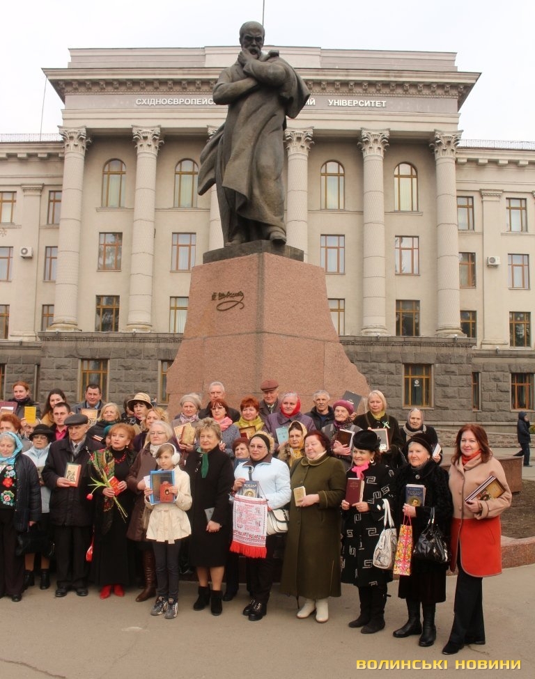 Розпочали дійство з покладання квітів до підніжжя пам’ятника Тарасу Шевченку перед головним корпусом СНУ імені Лесі Українки. Як наголосили присутнім – Шевченко знову поруч і знову попереду, вкотре змушує нас знаходити відповіді «Що ми? Чиї сини? Яких батьків? Ким, за що закуті?», а слова, які сказав Шевченко понад сотню літ тому, зрозумілі кожному і нині. Поезію «До Основ’яненка» виконала переможець обласного конкурсу читців Світлана Мельник (клуб села Коршів Луцького району), вірш із циклу «В казематі» «Сон-трава» виконала студентка Волинського державного училища культури та мистецтв імені Ігоря Стравінського Юлія Гаврилюк. Уривок з поеми «Марія» зачитала лауреат Всеукраїнських конкурсів читців Євгенія Рафаловська.Голова Волинської крайової організації всеукраїнського товариства «Просвіта» професор Людмила Стрільчук зазначила, що коли вже здавалося, душа України навік зачахне та умре, вона відродилася, озвалась до світу Тарасовим словом, його «Кобзарем».