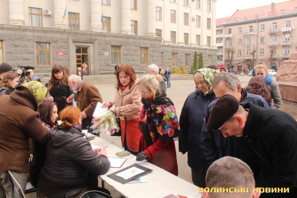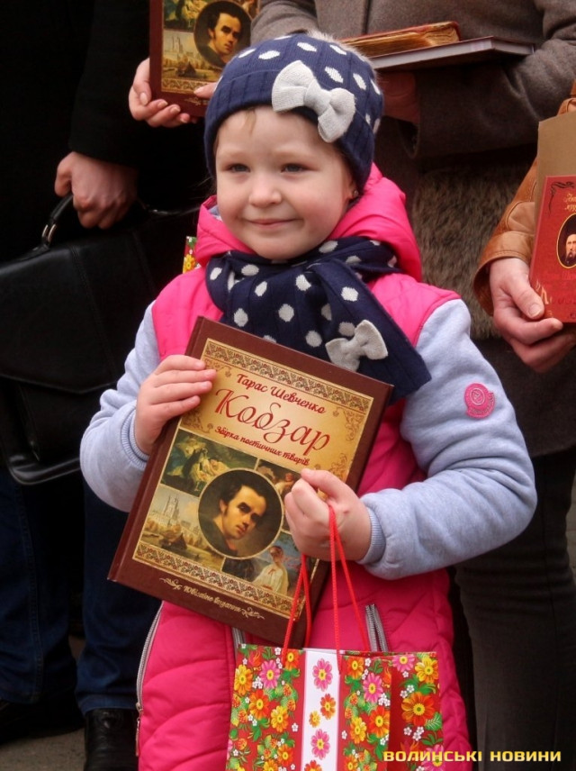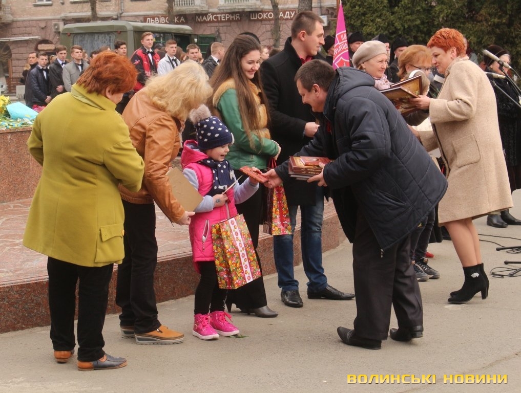 Після промов усі учасники акції гуртом прочитали вірш «Мені однаково».Оскільки найцінніший дар, який залишив українцям у спадок Тарас Шевченко – це «Кобзар», до акції «Мій Кобзар» долучилося 89 учасників-власників цієї знакової книги. Найстаріше видання «Кобзаря», датоване 1893 роком, принесла Валентина Єгорова. Приносили також «Кобзар» 1934 року видання. До слова, акцію відвідали лучани різного віку – найповажнішій за віком учасниці акції Ользі Лавренчук виповнилося 93 роки, наймолодшій – 4 роки.Переможці у номінаціях отримали нові видання «Кобзаря» та книги від представників Волинського осередку християнських письменників України.