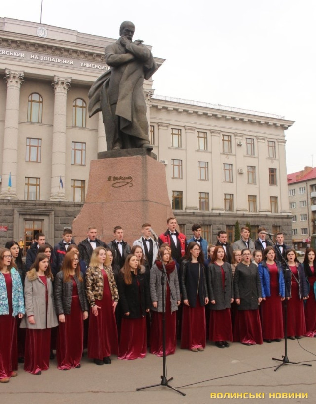 203 річницю від дня народження геніального українського поета та художника Тараса Шевченка відзначили мистецьким дійством «Нас єднають думи Кобзаря» у Луцьку 9 березня.
