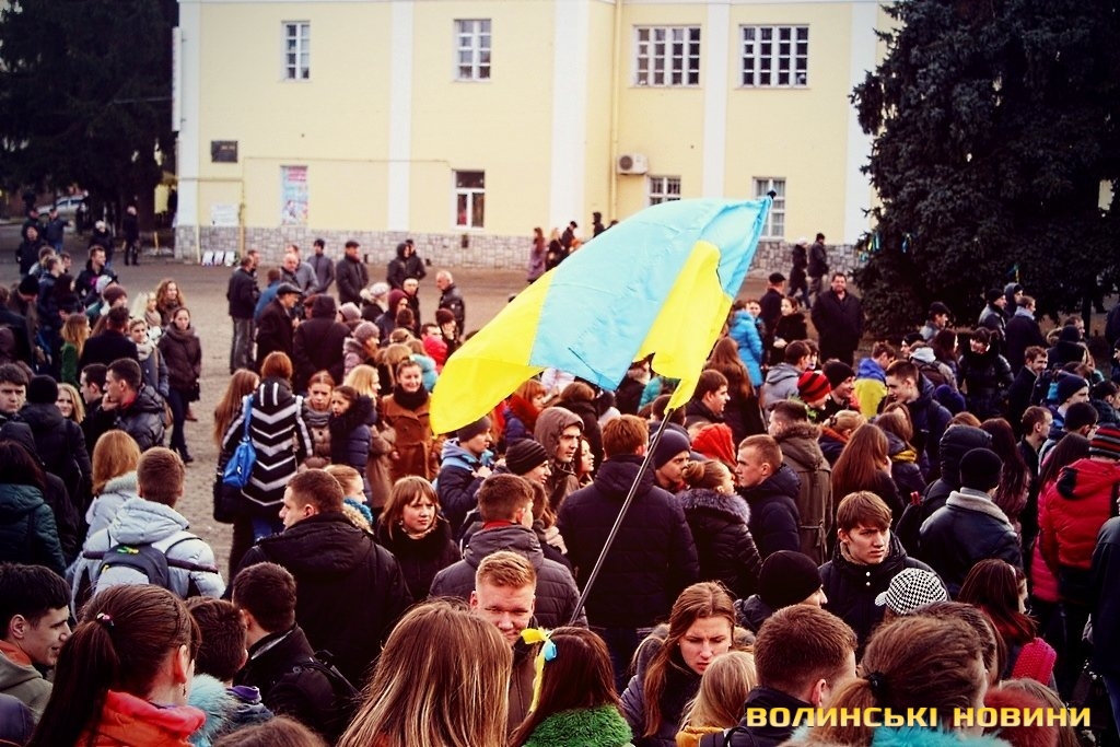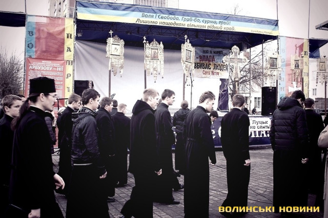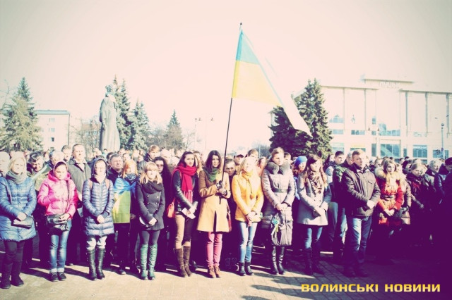 Лучани, що зібралися на Театральному майдані, разом із священнослужителями молилися за упокій душ тих краян, які полягли на кривавому Майдані у Києві.