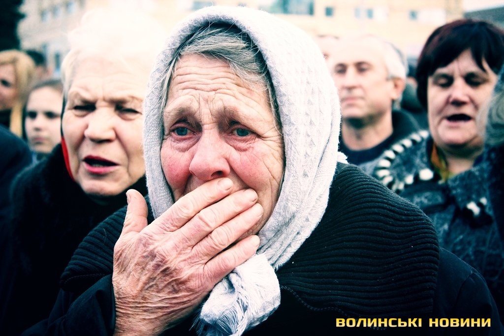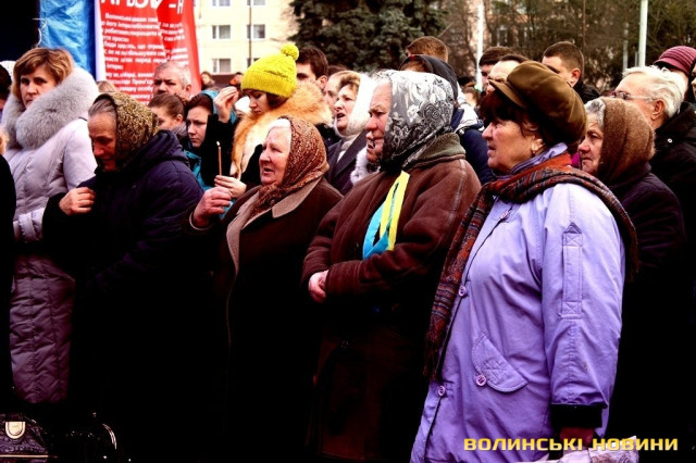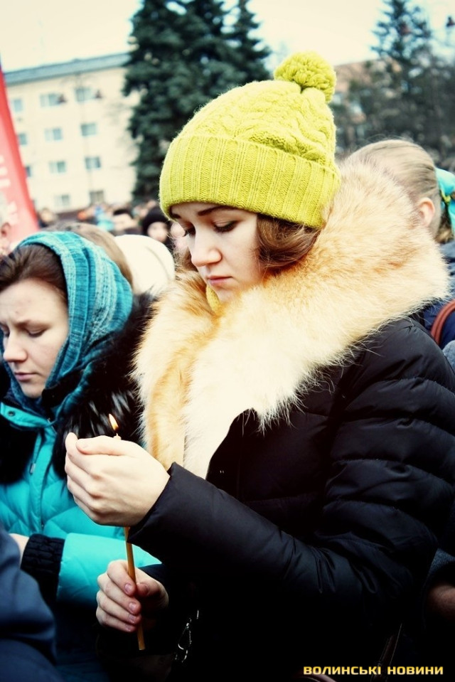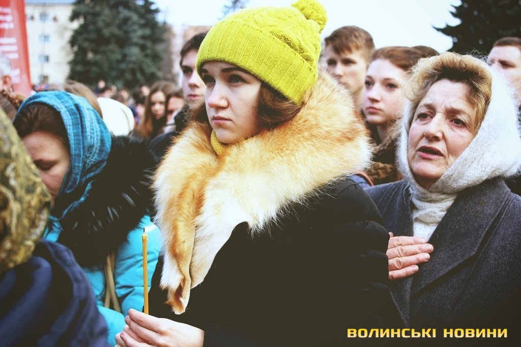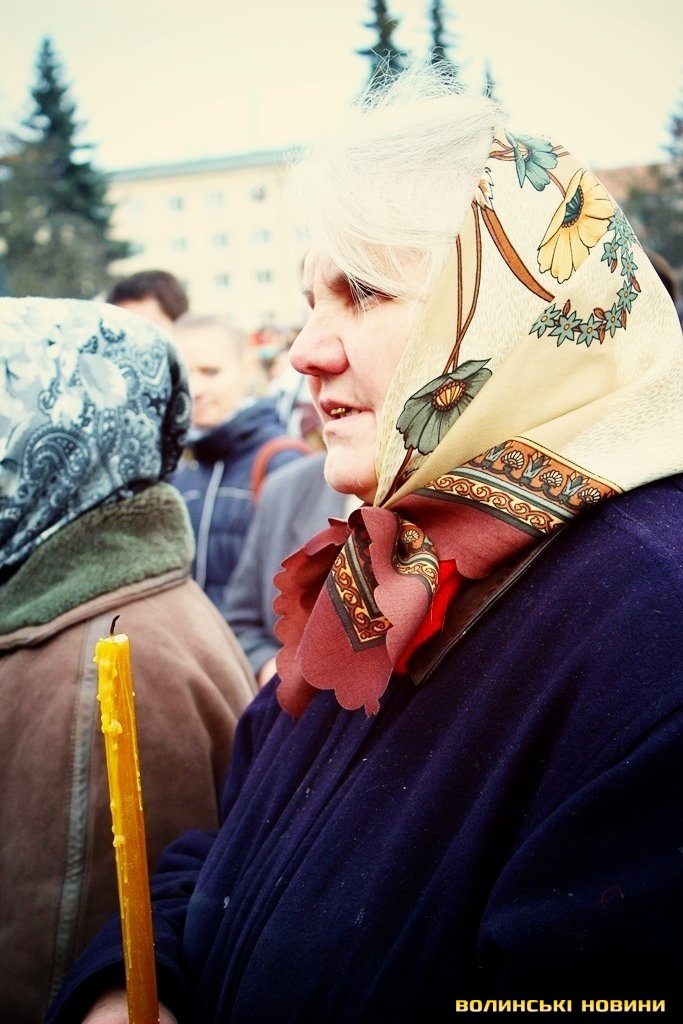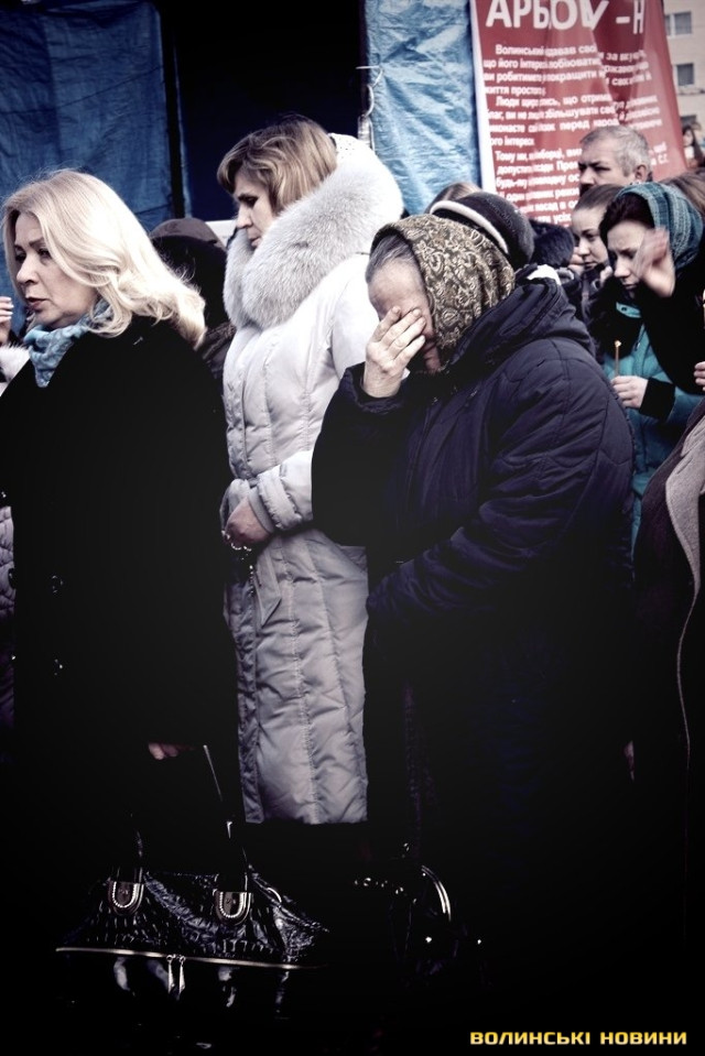 Зі свічками й повними сліз очима до сцени луцького майдану прийшли як молодь, так і літні люди. А коли церковний хор заспівав «Вічную пам’ять», багато хто із присутніх не могли стримати щирі ридання.