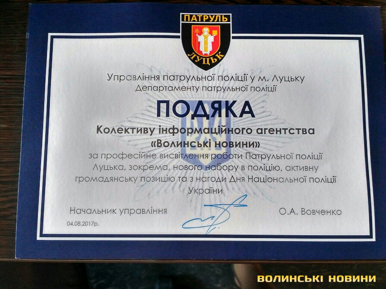 Дійство відбулося 4 серпня в приміщенні Управління патрульної поліції у Луцьку.