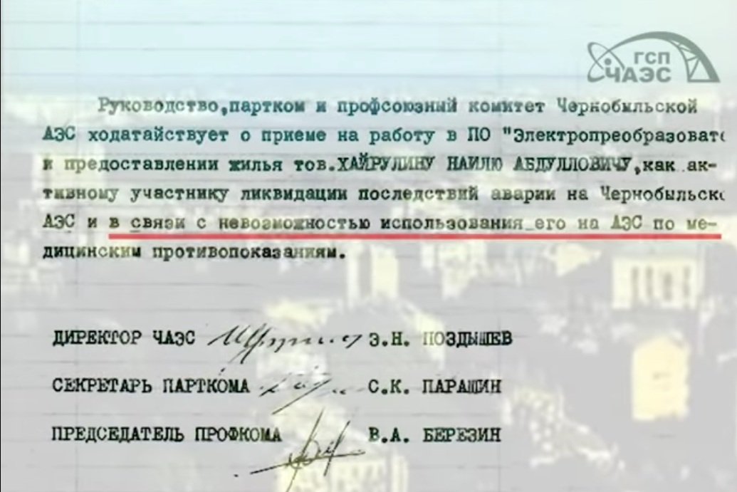 Не варто забувати, що працівники ЧАЕС, як і пожежники та медики, у перші дні ліквідації аварії піддалися комбінованому впливу радіоактивного випромінювання – зовнішньому гамма- та бета-випромінюванню від радіоактивного викиду, фрагментованих частинок зруйнованої активної зони реактора та інших радіоактивних частинок, які осідали на шкірі, а також внутрішньому опроміненню внаслідок дихання радіоактивним пилом. З кожною новою відпрацьованою зміною за медичними показаннями, найчастіше, через зміни в крові, все більше працівників ЧАЕС направляли в медичні заклади. Тих, хто перебував у найважчому стані, – в московську клініку, решту – в київські лікарні.