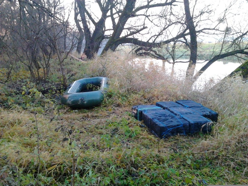 Як зазначають правоохоронці, спочатку прикордонний наряд виявив сліди, що вели в бік держрубежу та 8 ящиків сигарет білоруського виробництва, гумовий човен та сумку з насосом і веслами.
