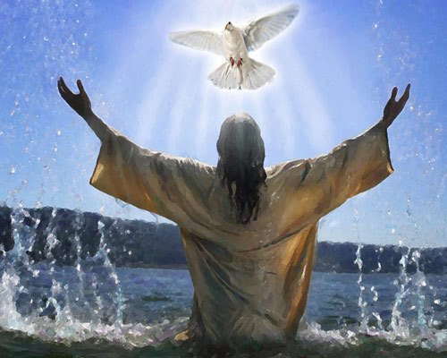 Коли після хрещення Ісус вийшов з вод Йордану, над ним відкрилися небеса і Іоанн Хреститель побачив Духа Божого у вигляді голуба, який спустився на Ісуса, і почув голос Бога-Отця, який сказав: "Це Син мій улюблений, в Якому Моє благовоління".