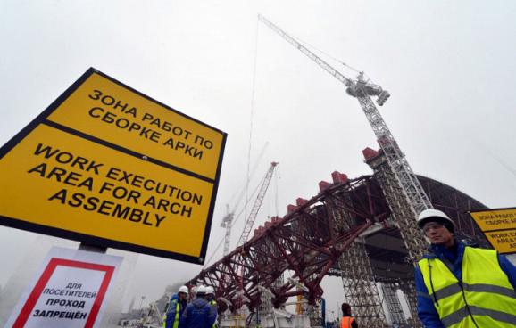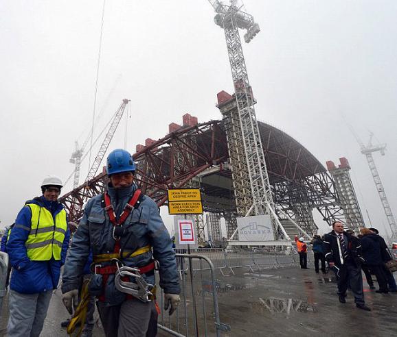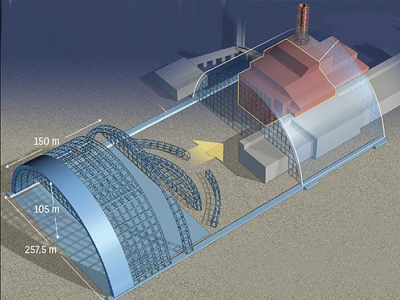 Роботи зі зведення нового саркофага стартували 26 квітня 2012 року. Нове укриття шириною 150 і 260 метрів матиме висоту 105 метрів. Згідно інженерної документації проекту, після того, як арка буде зібрана, її «насунуть» на нинішній об'єкт «Укриття».
