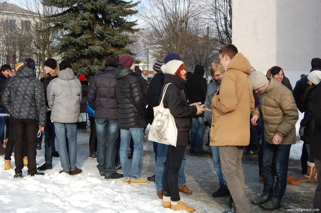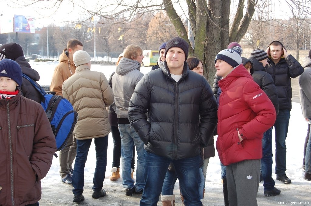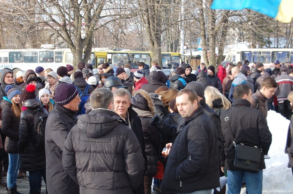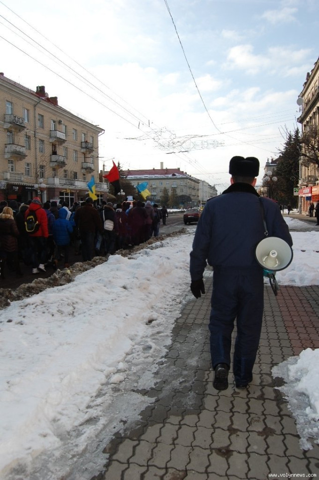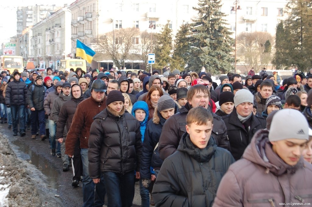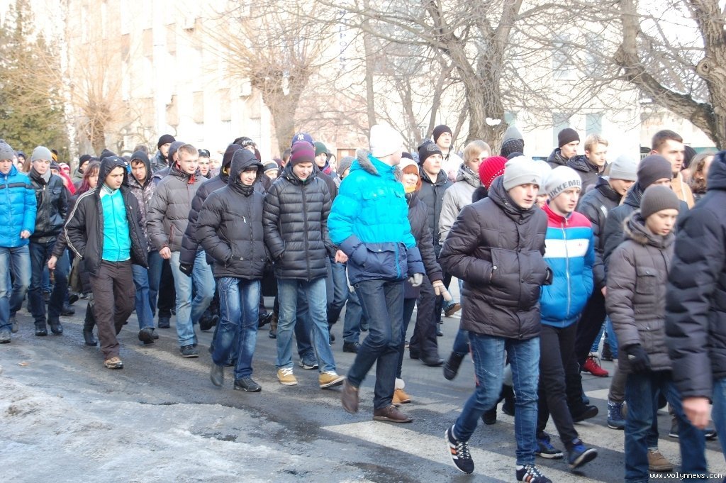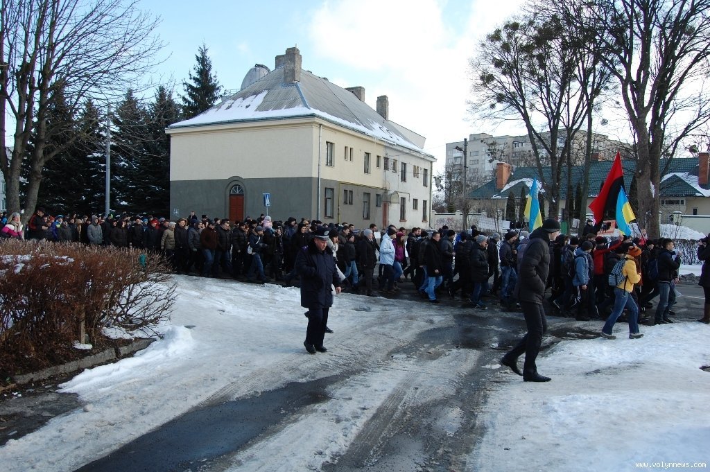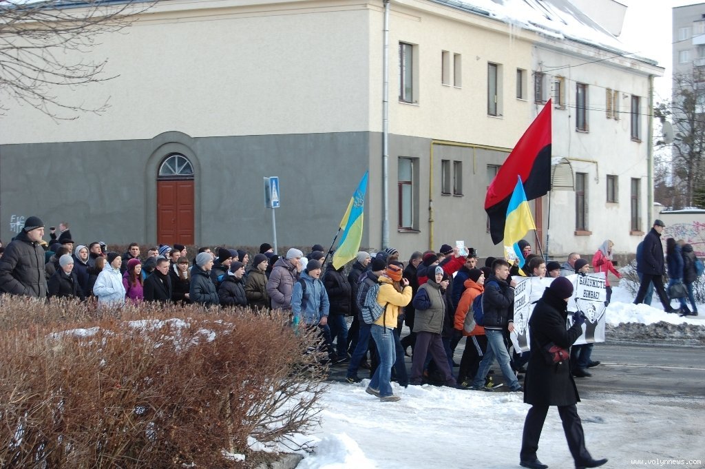 Учасники заходу пройшли маршем від приміщення історичного факультету СНУ імені Лесі Українки вулицею Шопена, а далі - проспектом Волі до управління МВС України у Волинській області, що у Луцьку, 16 лютого.