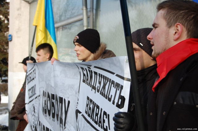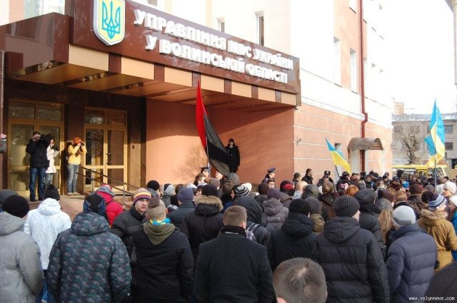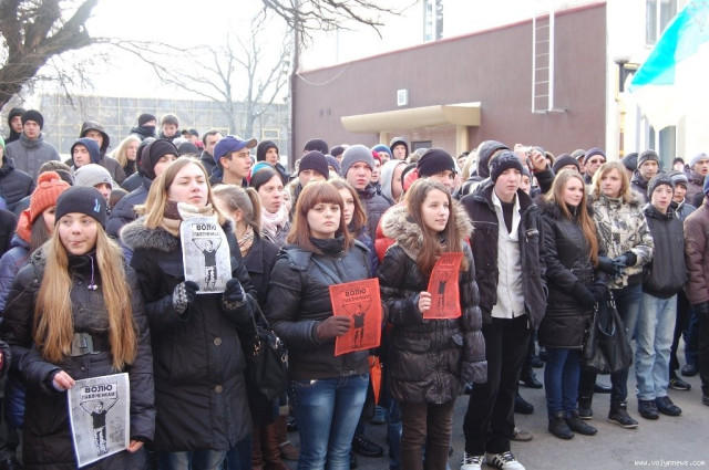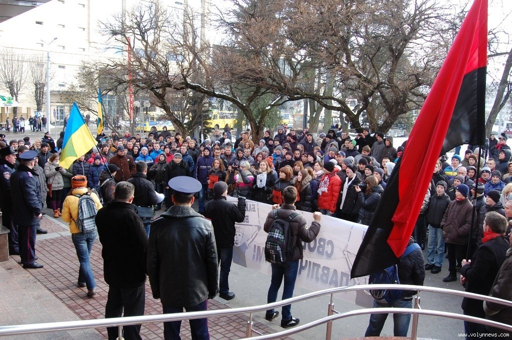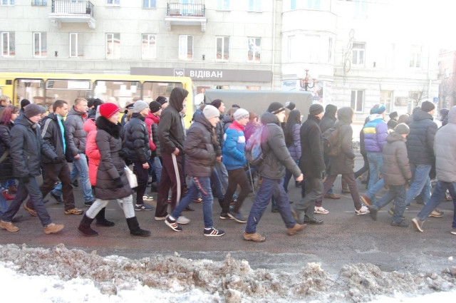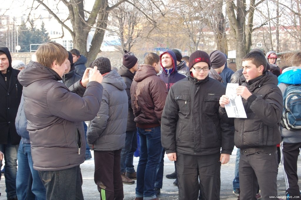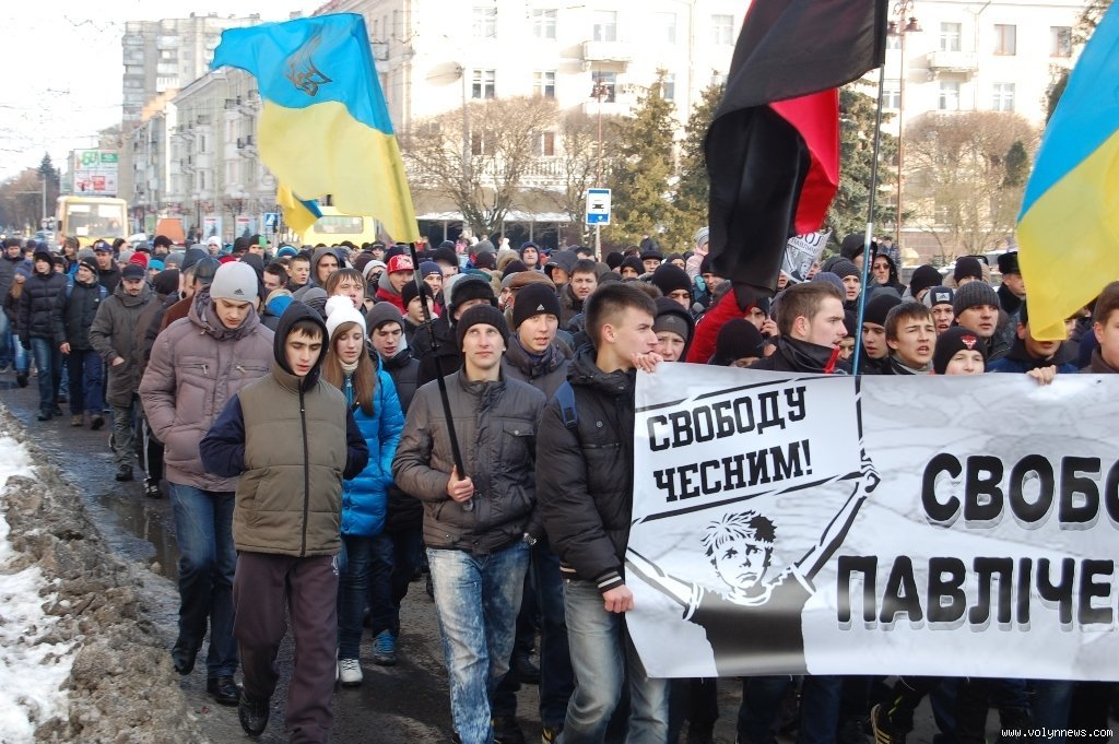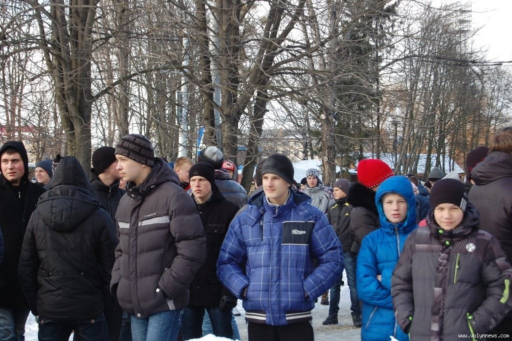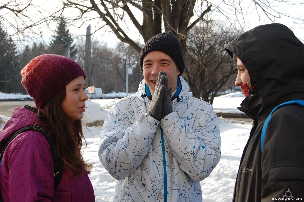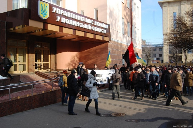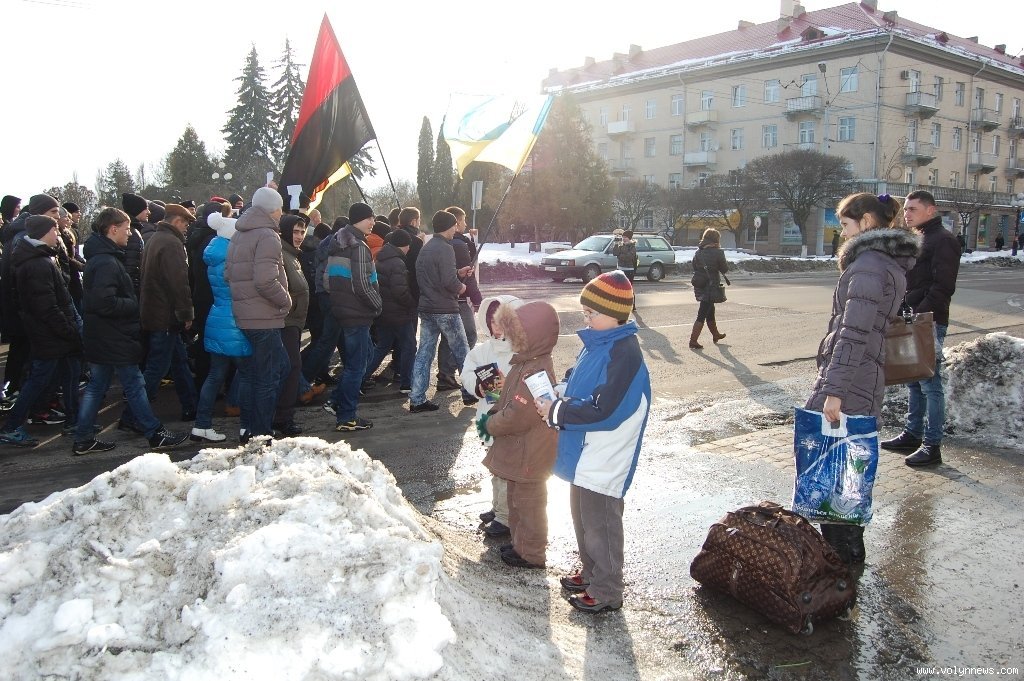 Учасники заходу пройшли маршем від приміщення історичного факультету СНУ імені Лесі Українки вулицею Шопена, а далі - проспектом Волі до управління МВС України у Волинській області, що у Луцьку, 16 лютого.