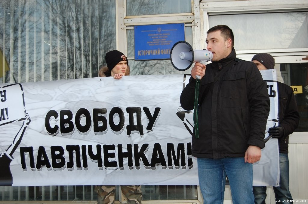 Люди, які виявилися небайдужими до долі сім'ї Павліченків, зайняли майже усю площу перед приміщенням вишу. З-поміж інших участь у акції взяли фанати луцького ФК «Волинь», члени громадських організацій та політики. Так, серед присутніх були й народні депутати ВРУ Анатолій Вітів та Євген Мельник.