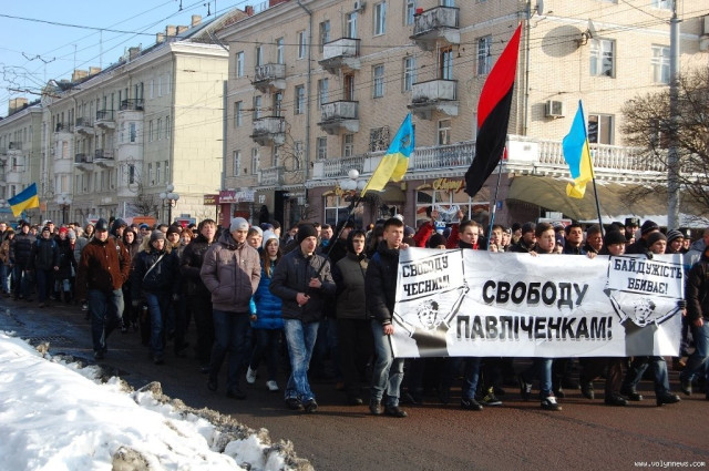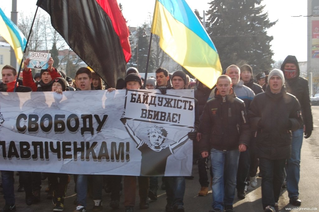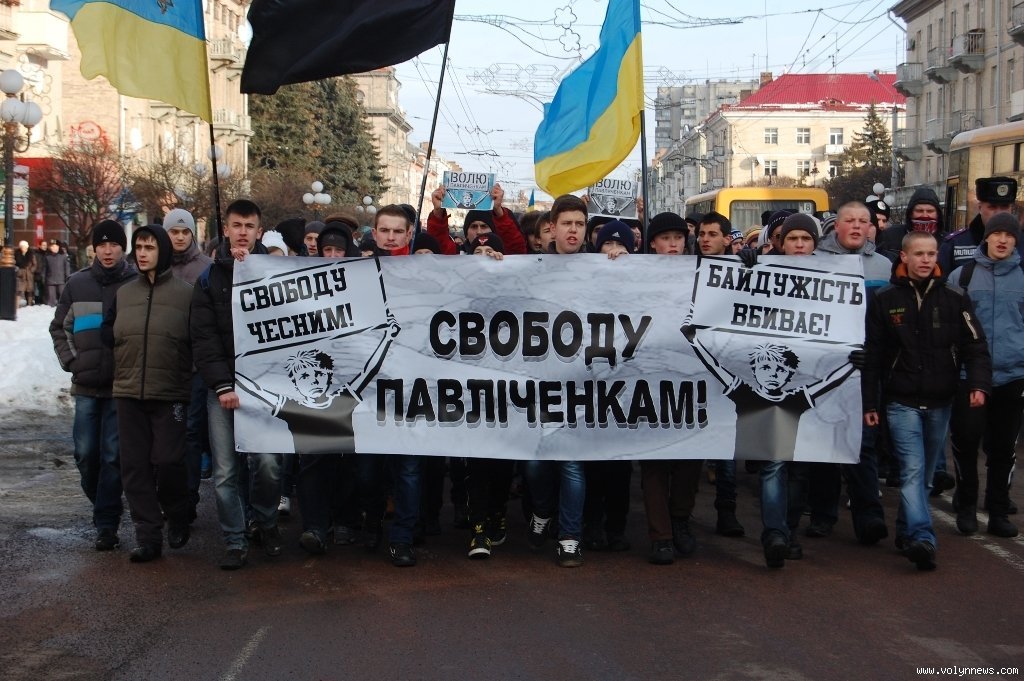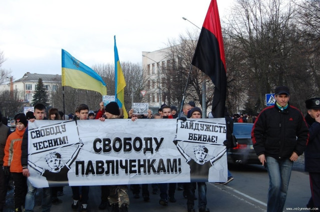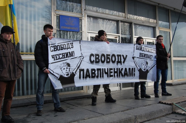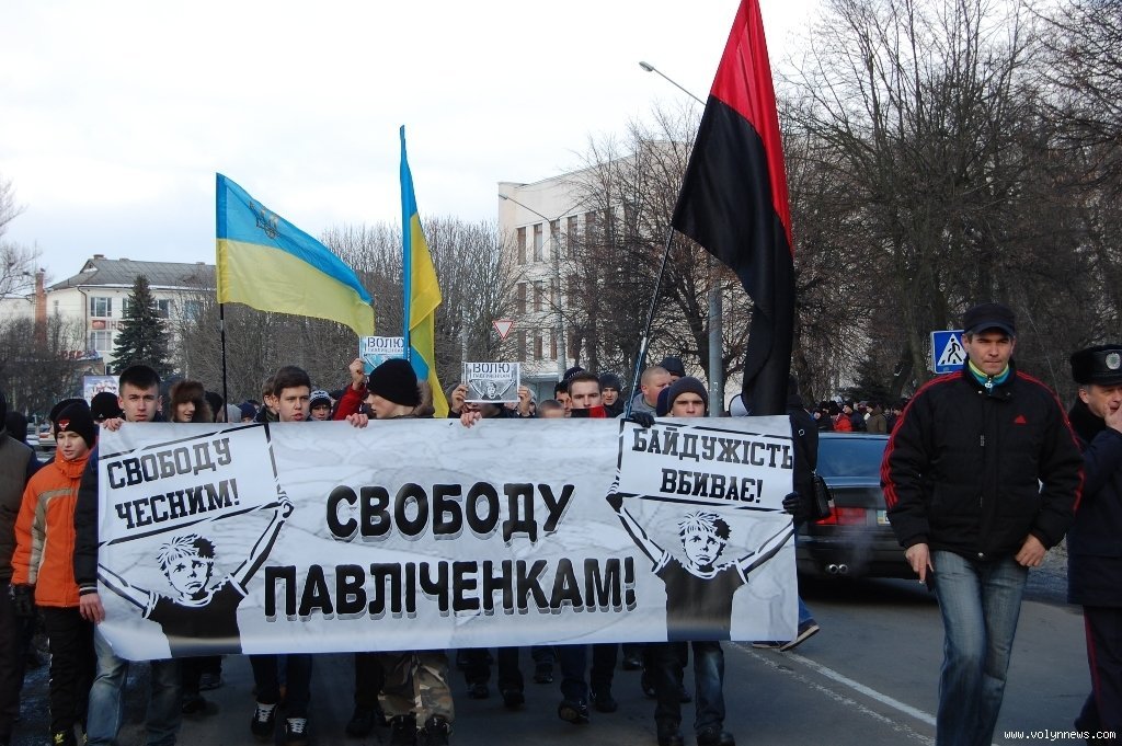 Небайдужі лучани взяли участь у акції протесту в підтримку Дмитра та Сергія Павліченків, яких засудили за вбивство судді Шевченківського районного суду.