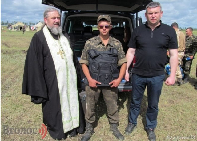 І тут піп пропіарився.Де діти начальничків на передовій? Знайшлося б обмундировання!