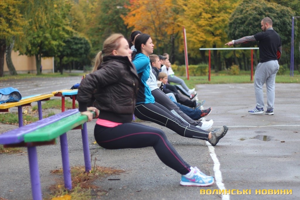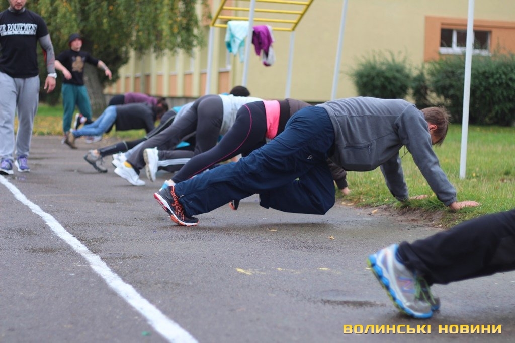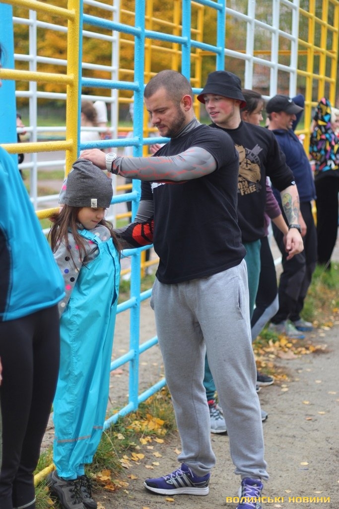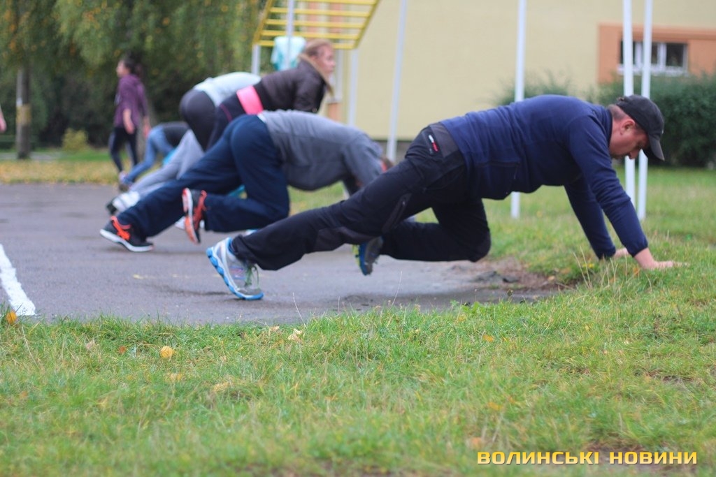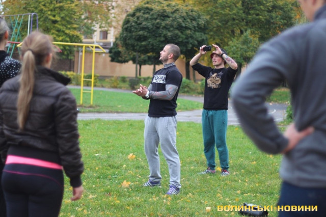 Як завше, вчив учасників розминати м'язи тренер Олег Хомяк.Традиційно зарядку розпочали з бігу, щоб розігрітися та підготуватися до активнішого тренування.