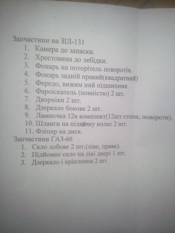 Список запчастин, які потрібні волинянам на ремонт техніки для АТО