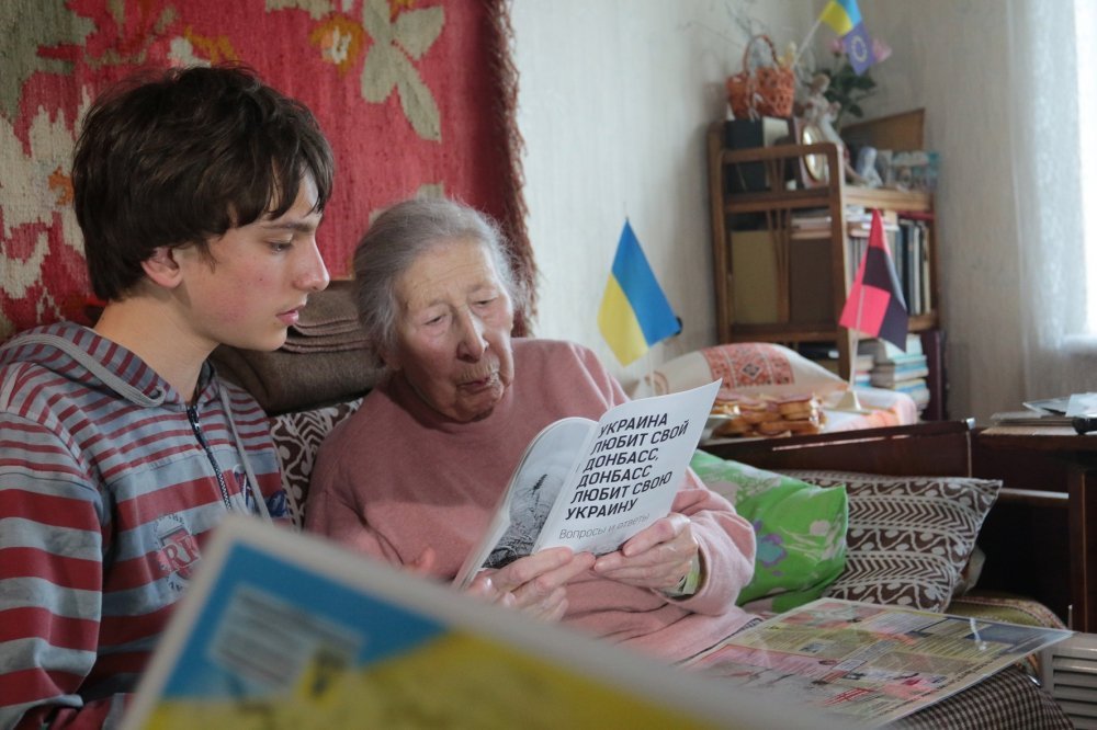 Троє молодих людей - одна дівчина з Сєверодонецька та двоє хлопців з Маріуполя,- побувавши на Волині і у Львові, зустрілися з ветеранами національно-визвольної боротьби. Згодом у себе на Донбасі вони покажуть фільм про цих ветеранів", – повідомив, координатор проекту з громадянської освіти у школах Донбасу, Олег Яценко.