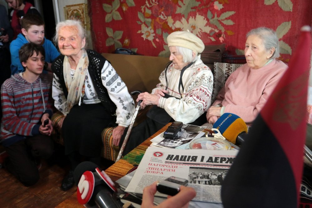 91-річна Дарія Гусак розповідала гостям про свою підпільну роботу в УПА, а школярі зізнались, що тільки після приходу українських військ стали себе почувати захищеними.