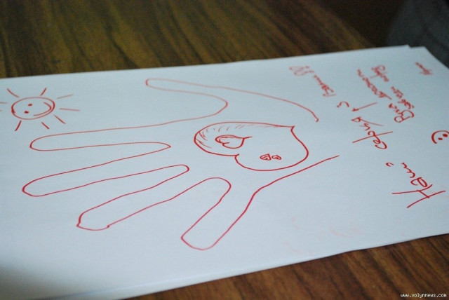 Також розповіла, що цього тижня представники фонду їдуть до обласної та міської дитячих лікарень, аби вручити спеціальне обладнання – кардіографи. Тому жінка запропонувала студентам на папері обмалювати свою руку та залишити побажання для хворих дітей.