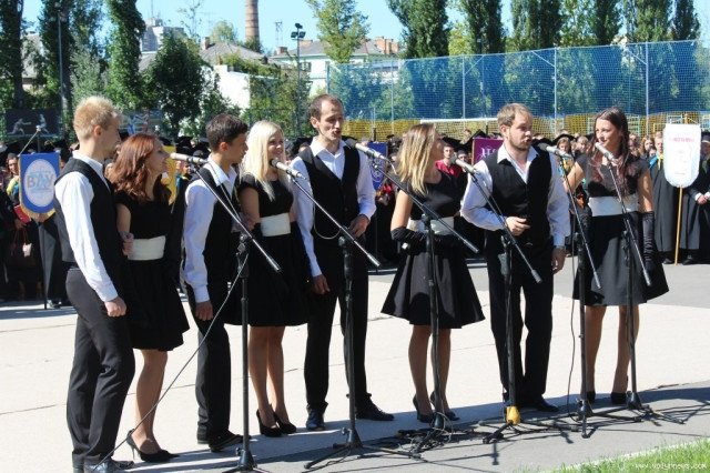Після привітання ректора пролунав «Gaudeamus», який присутні слухали, стоячи.